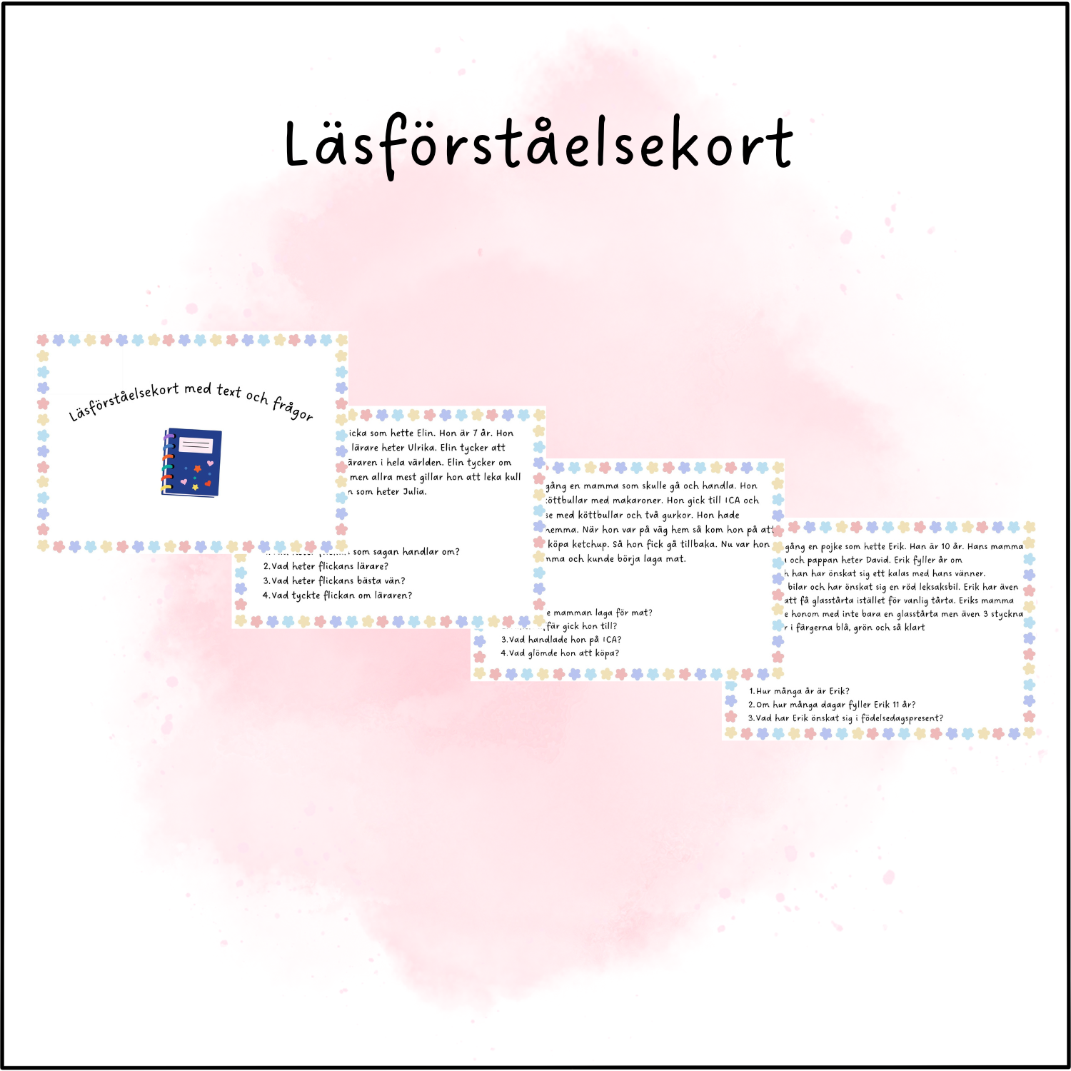 Här får ni läsförståelsekort där eleverna får öva på att läsa kortare texter och svara på frågor utifrån texterna de läser.
