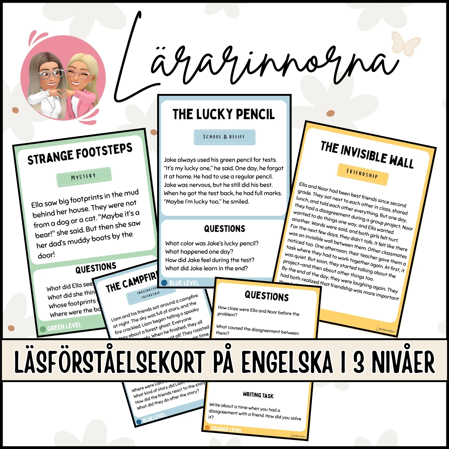 Detta ingår i Läsförståelsekort på engelska i 3 olika nivåer