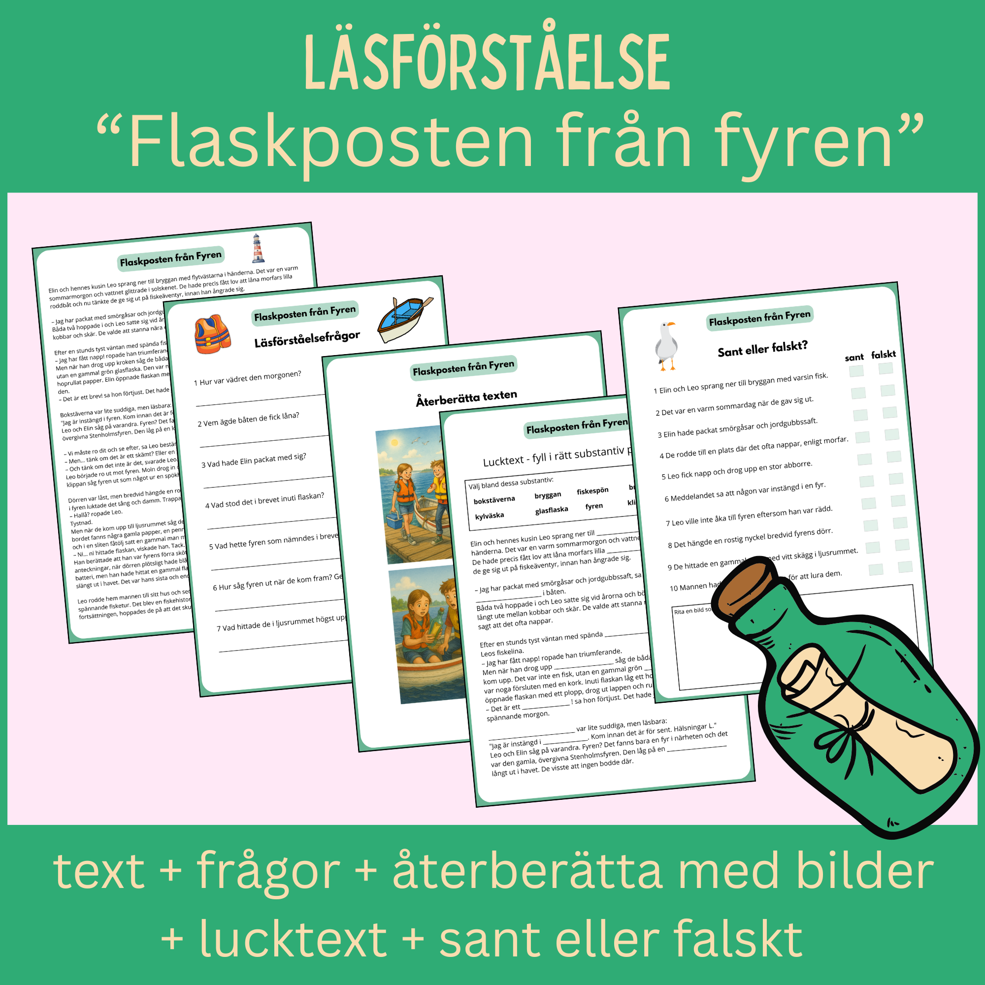 Innehåller en berättande text, “Flaskposten från fyren”.