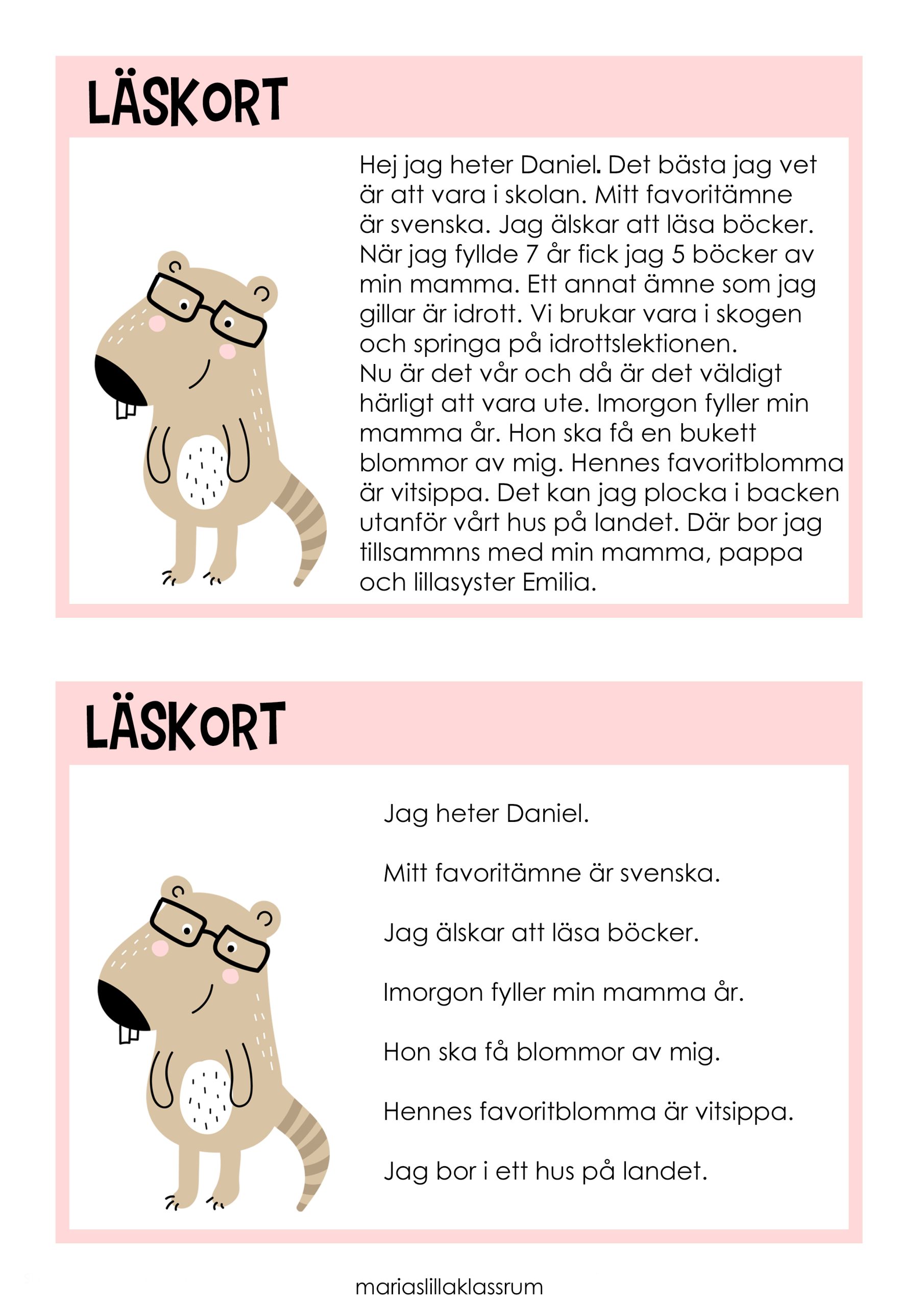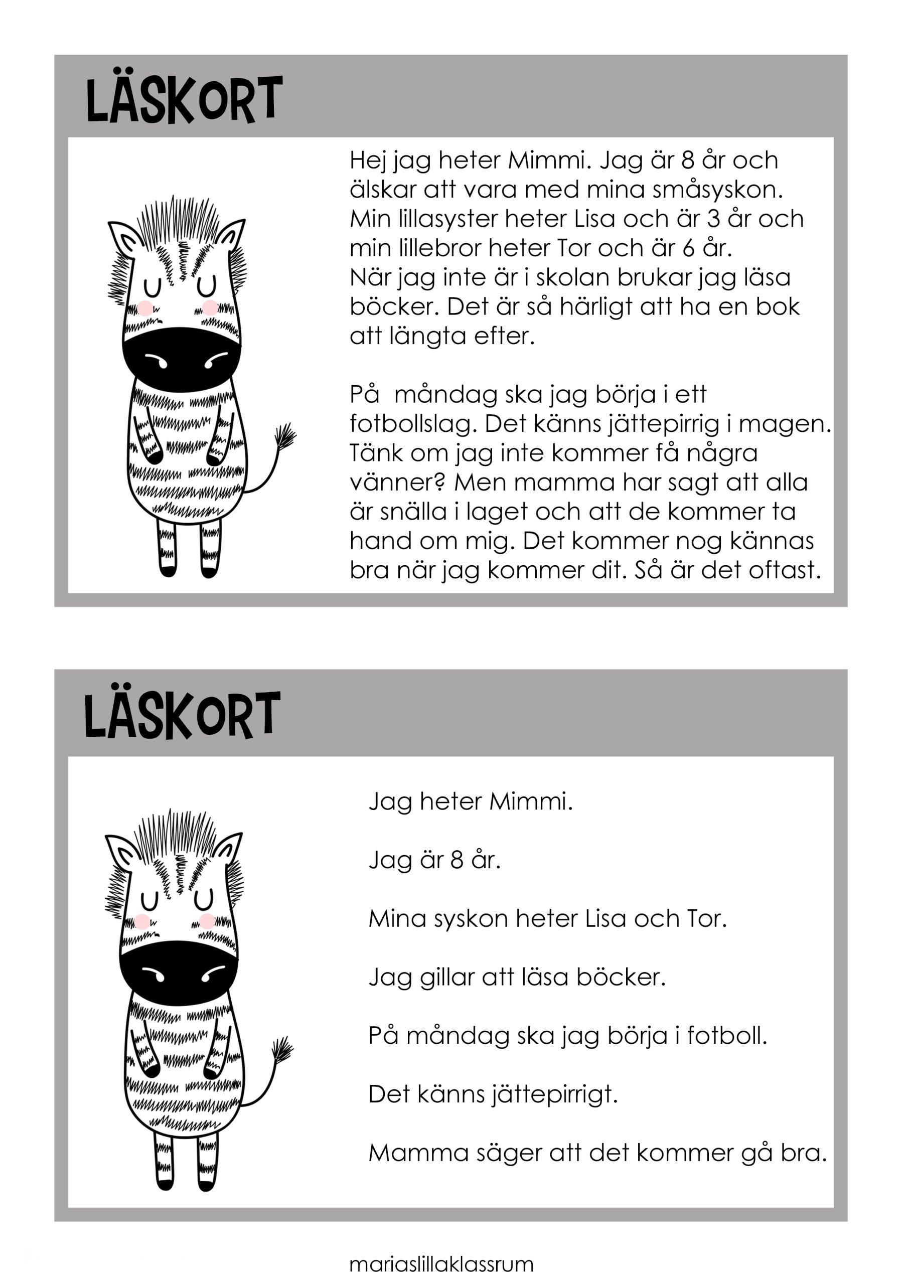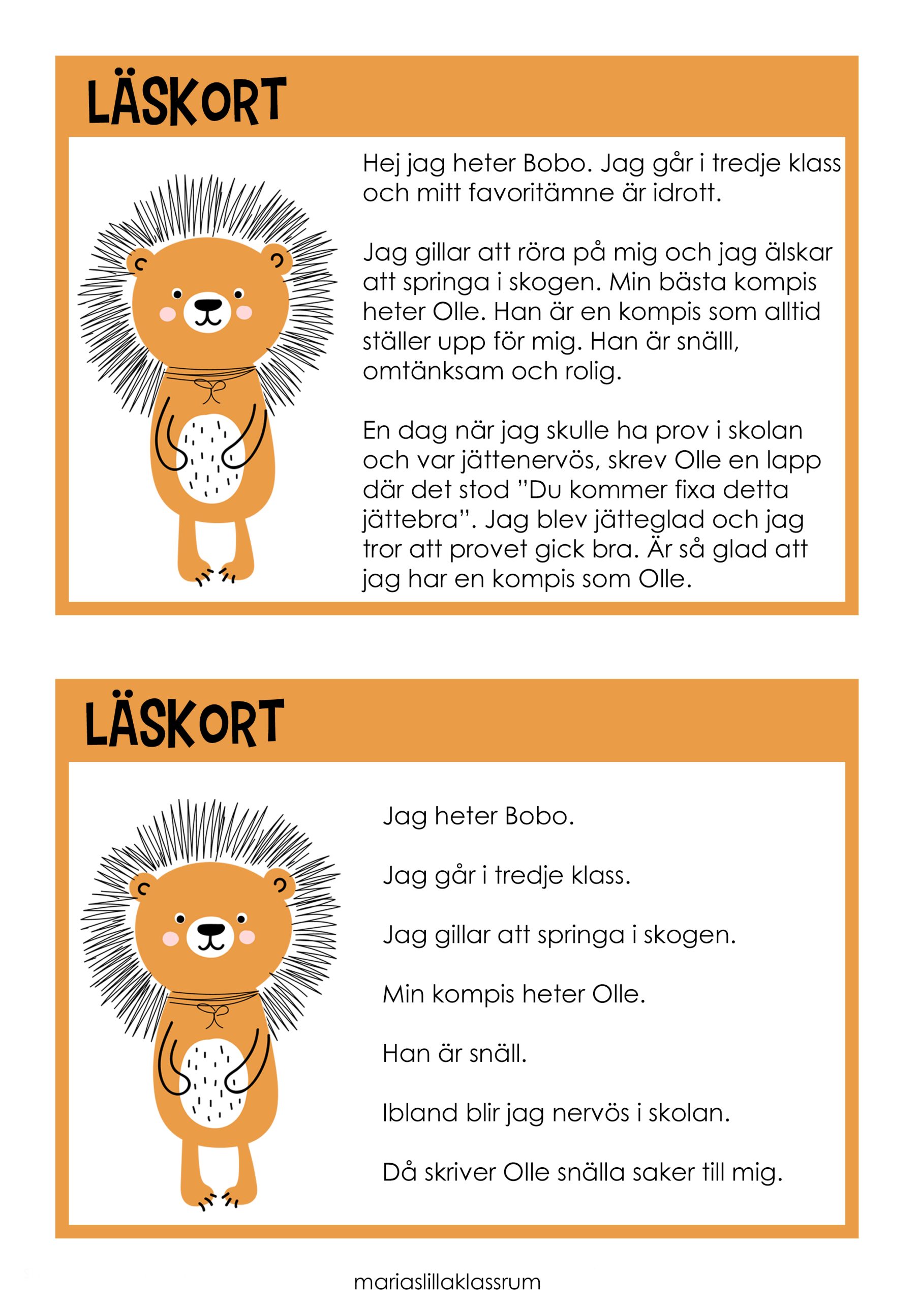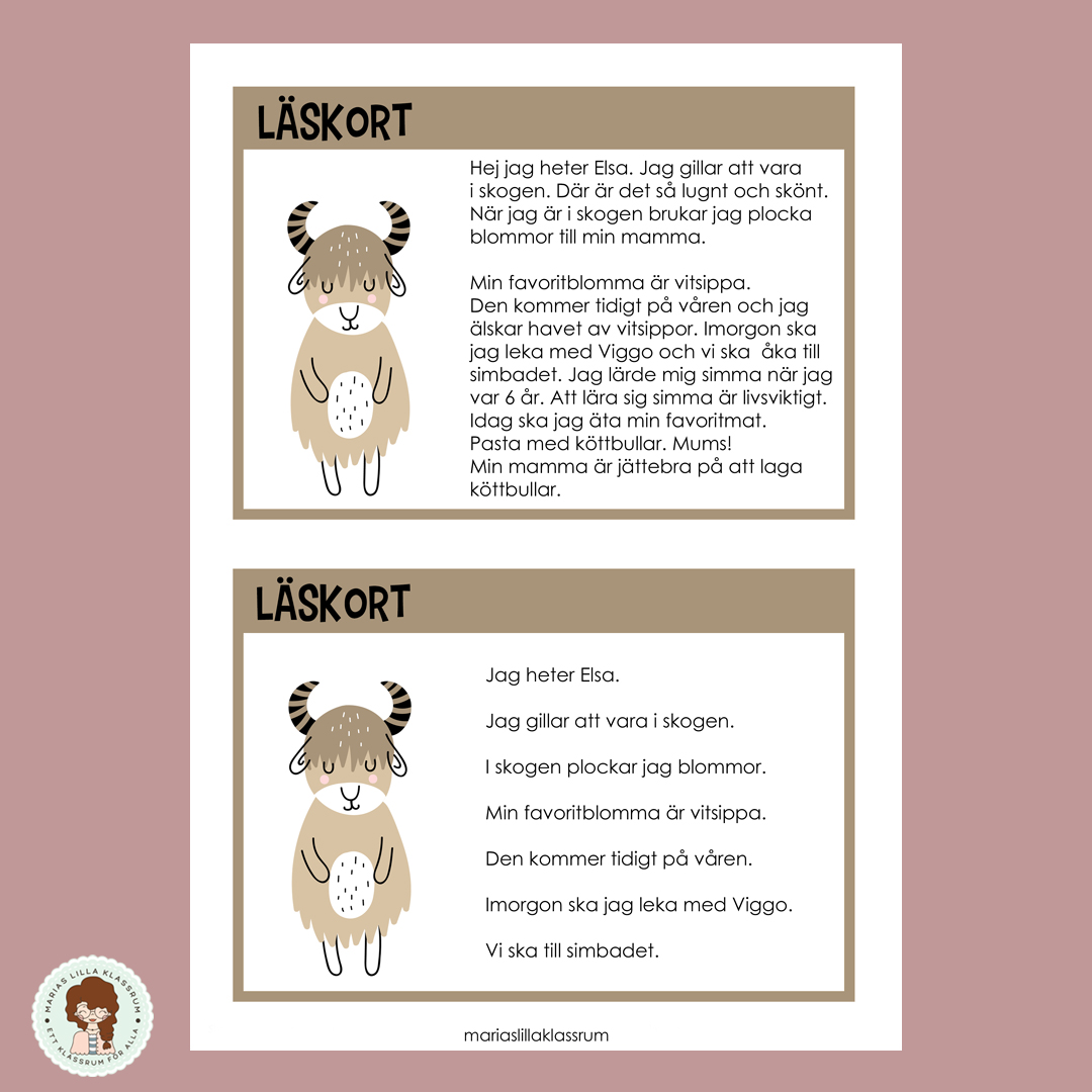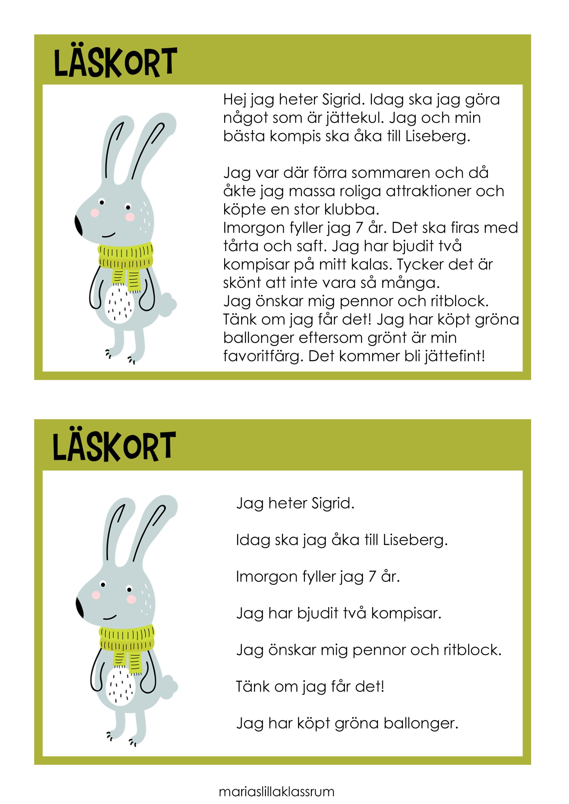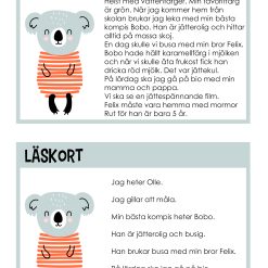 12 stycken läskort med två nivåer. Skriv ut och laminera.