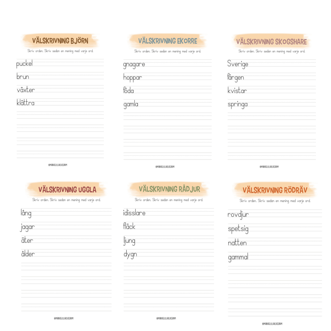 Extramaterial – 1 stencil skrivträning till varje djur.