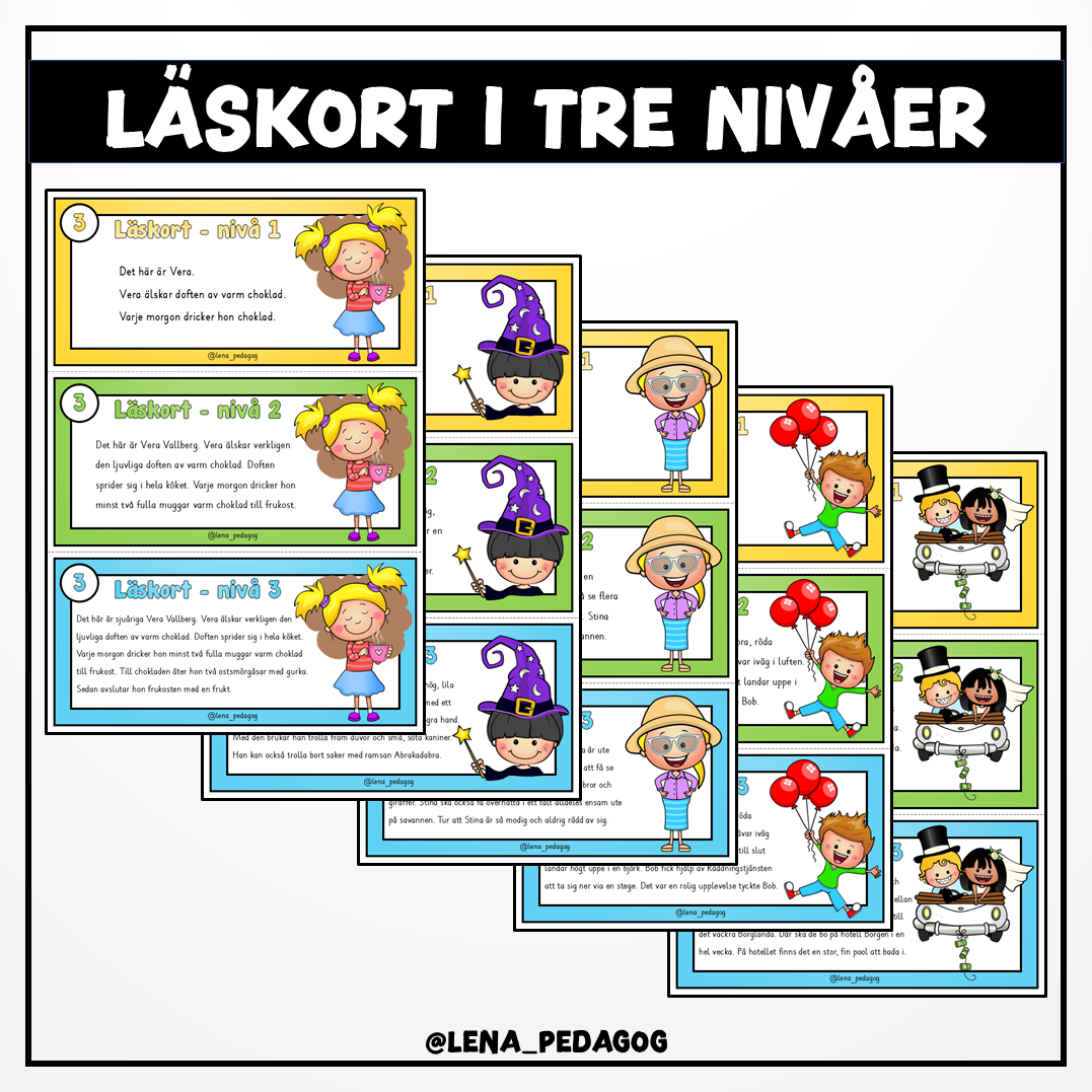 30 läskort i tre olika nivåer. Utbyggda och/eller nya meningar tillagda.