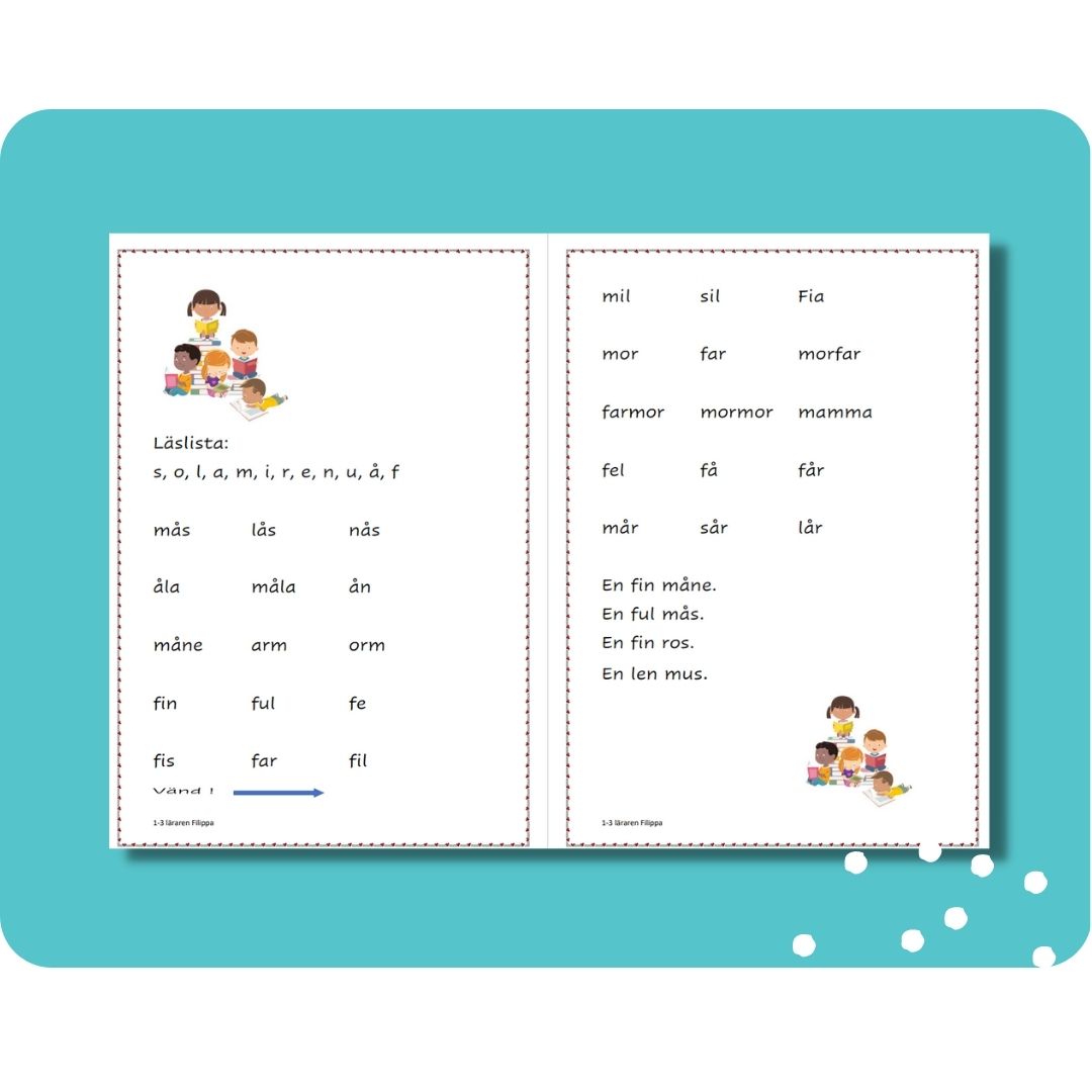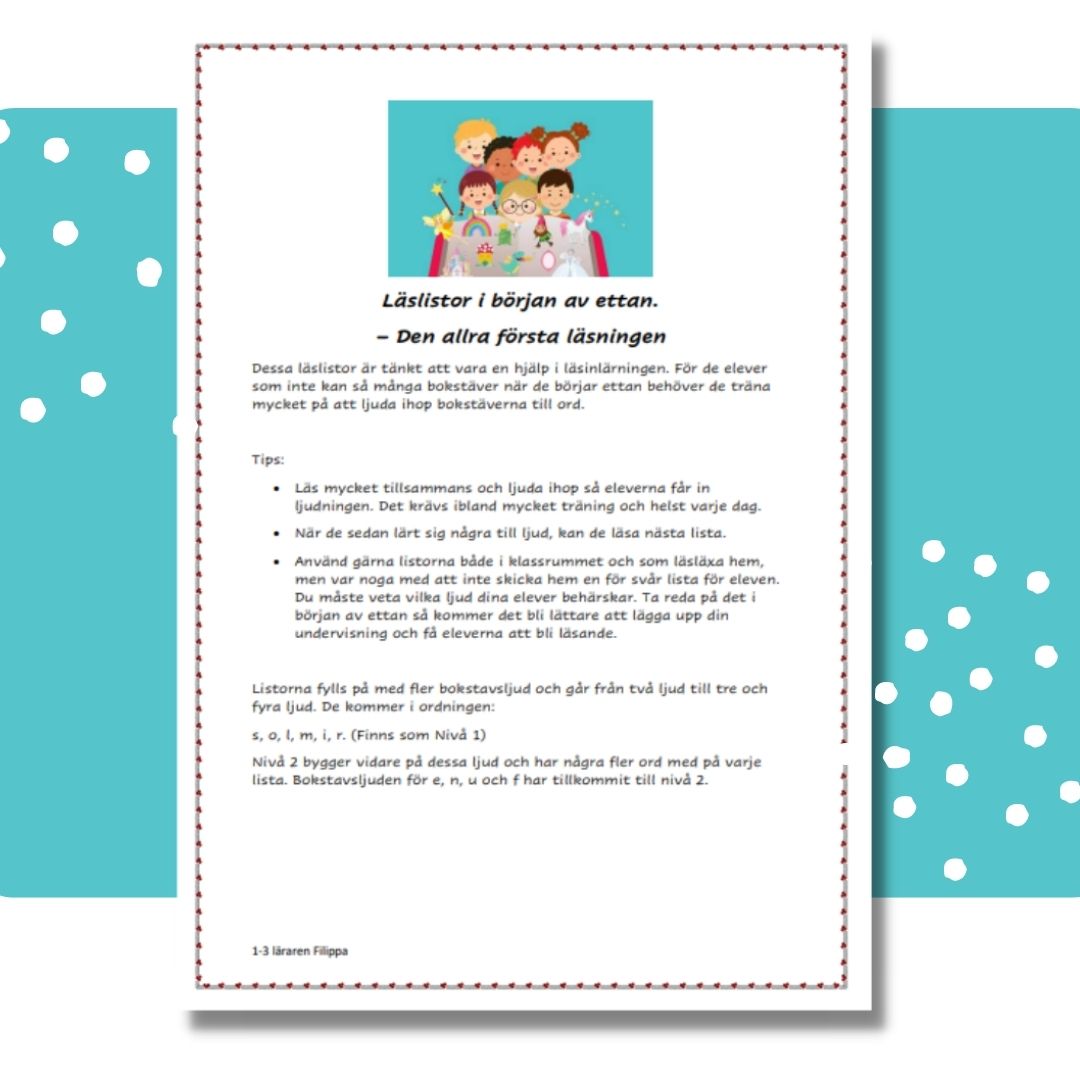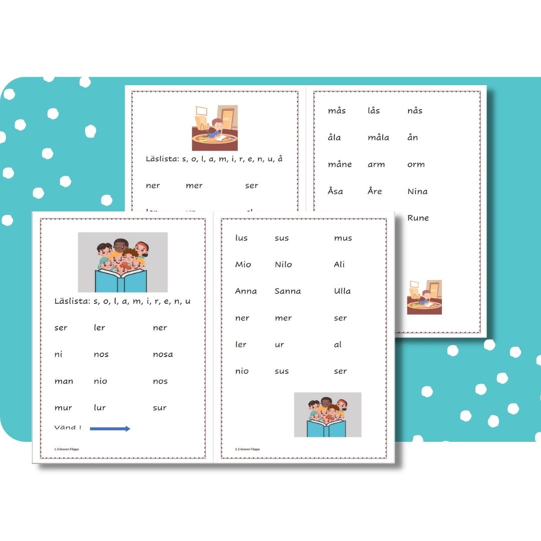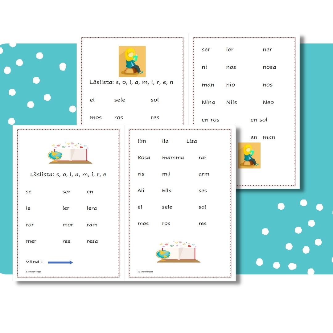 Läslistor enligt ljudmetoden för den allra första läsningen i år 1.