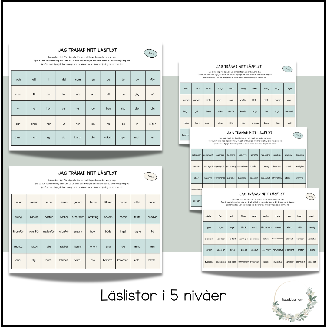 Jag brukar sätta ihop listorna till ett häfte och låta mina elever intensivträna under ett par veckor (perfekt efter lov eller när eleverna behöver komma igång med läsningen lite extra). Jag brukar dela in mina elever i läspar där eleverna läser i sitt häfte 3 minuter åt gången. När elev 1 läser har elev 2 ansvar för att följa med i texten och lyssna på kompisen. Läser eleven fel pekar kompisen på ordet och eleven läser om. Första gången de läser får de ringa in det sista ordet som lästes. Därefter markerar eleverna med ett kryss under sista lästa ordet vid resterande lästillfällen (lyckas en elev kommer igenom hela häftet börjar hen om och får då sätta två x under sista lästa ordet).