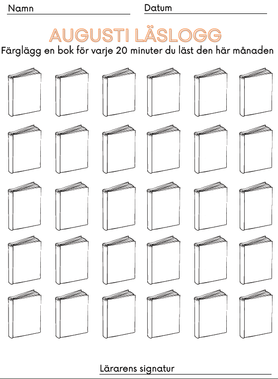 Läsloggar som motiverar eleverna att läsa mer utifrån deras egen nivå, tre olika läsloggar med olika motiv för augusti, september och oktober!