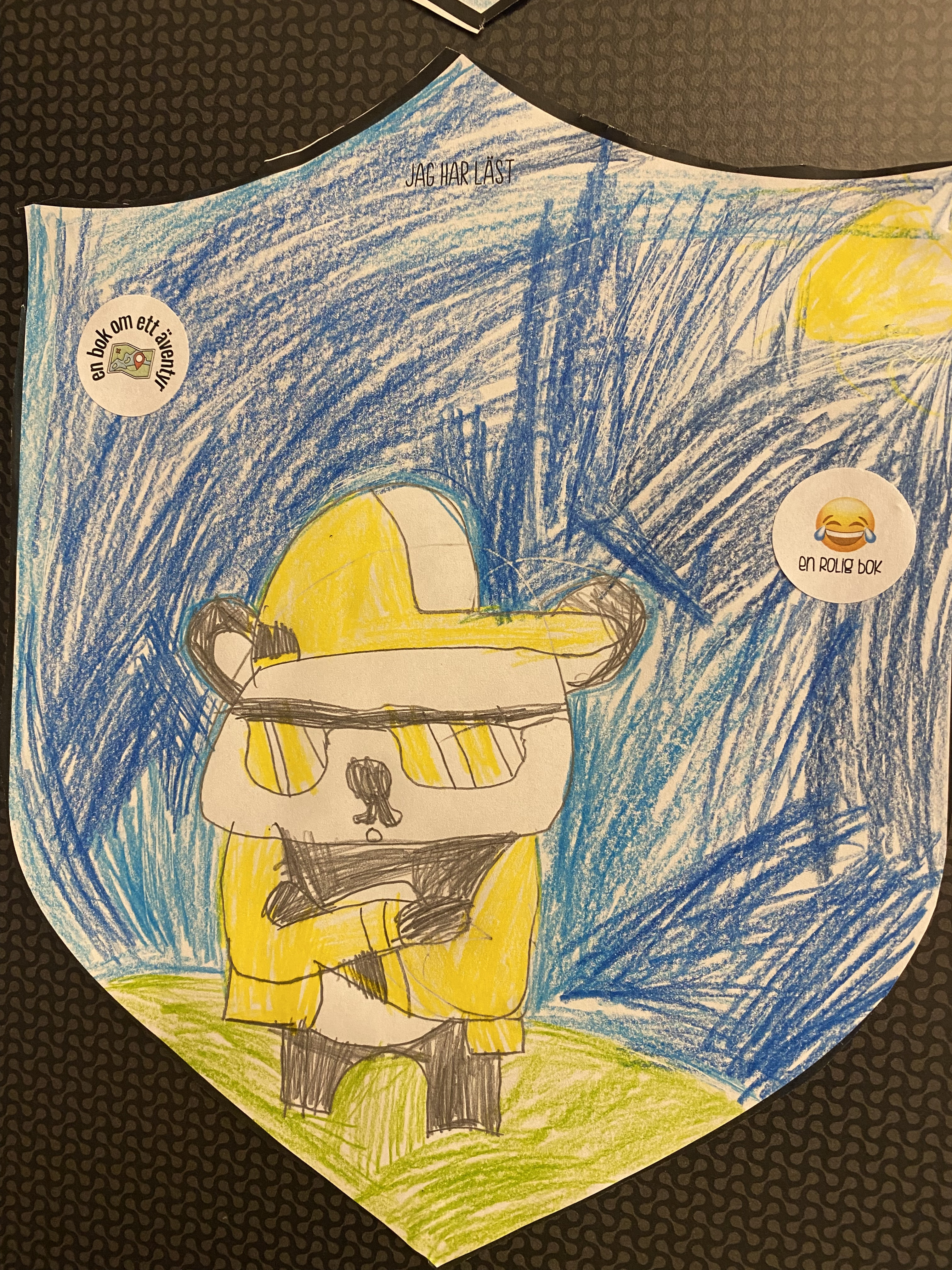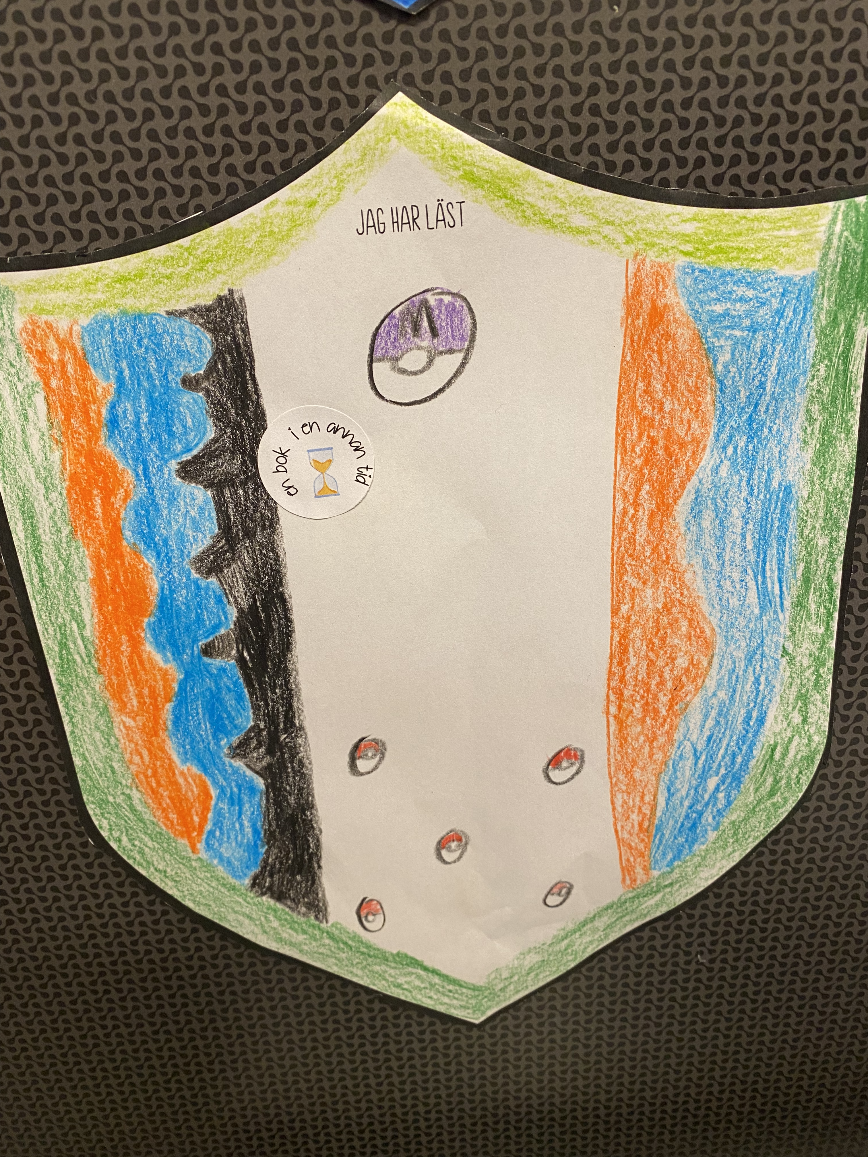 Låt eleverna färglägga varsin lässköld. Därefter är utmaningen att samla läsmärken till sin sköld.
