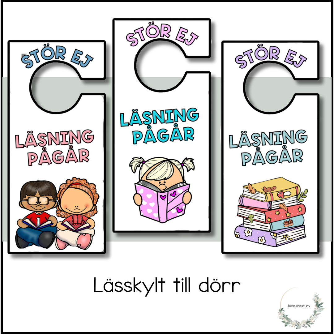 Skylt att hänga på dörren när läsning pågår i klassrummet.