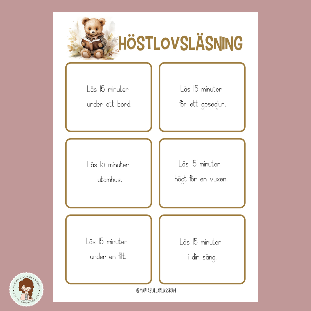 Inspirera dina elever till läsning under höstlovet med hjälp av läsuppdrag.