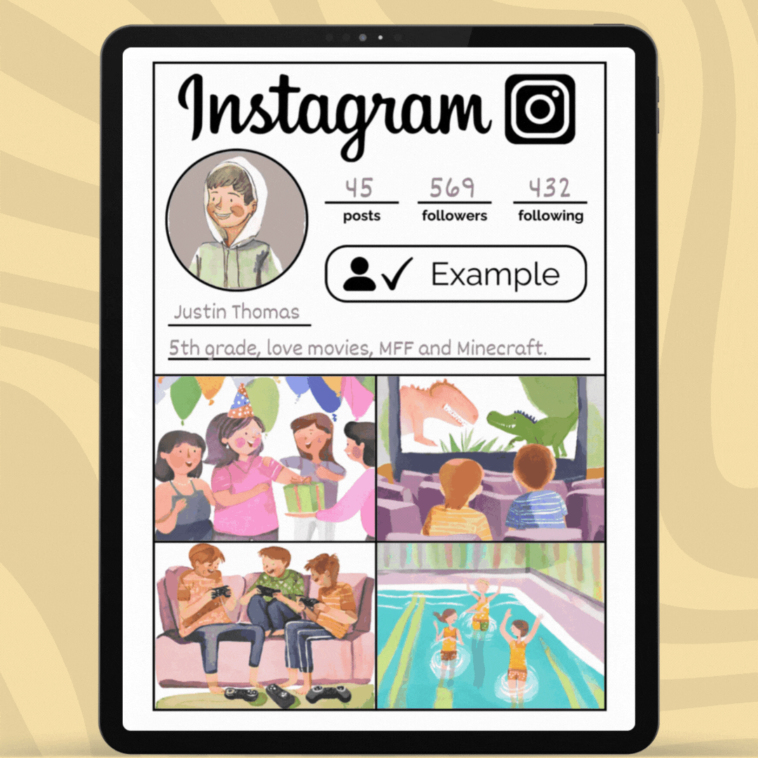 En muntlig övning i engelska där eleverna ska skriva ner stödord och måla 4 händelser från lovet. Därefter ska de berätta för sina kompisar om händelserna.