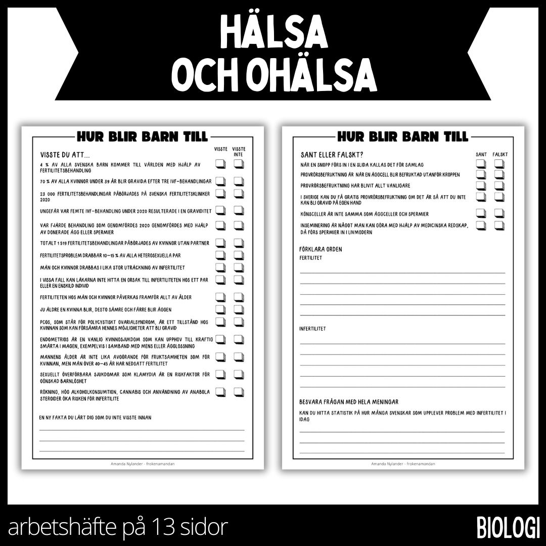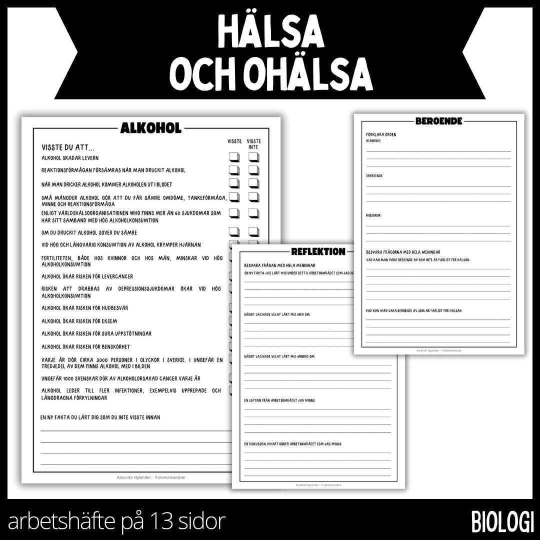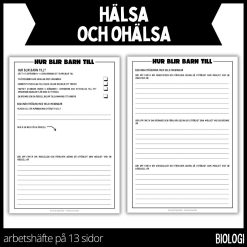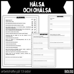 Ett arbetshäfte på 13 sidor om hälsa och ohälsa. När jag gjort materialet har jag utgått från läromedlet PULS NO. Materialet ämnar att utveckla elevernas ordförråd och begreppskunskap, resonemangsförmåga, analysförmåga men också kunskap om ämnet hälsa och ohälsa och allt var det kan tänkas innebära.