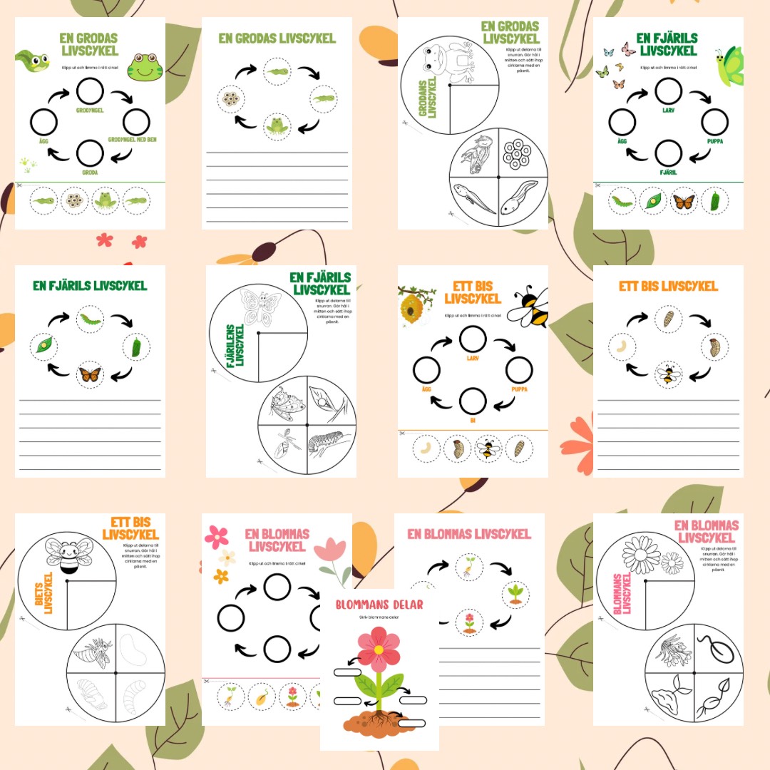 – Arbetsblad där eleven klipper ut bilder och sätter fast på livscykeln