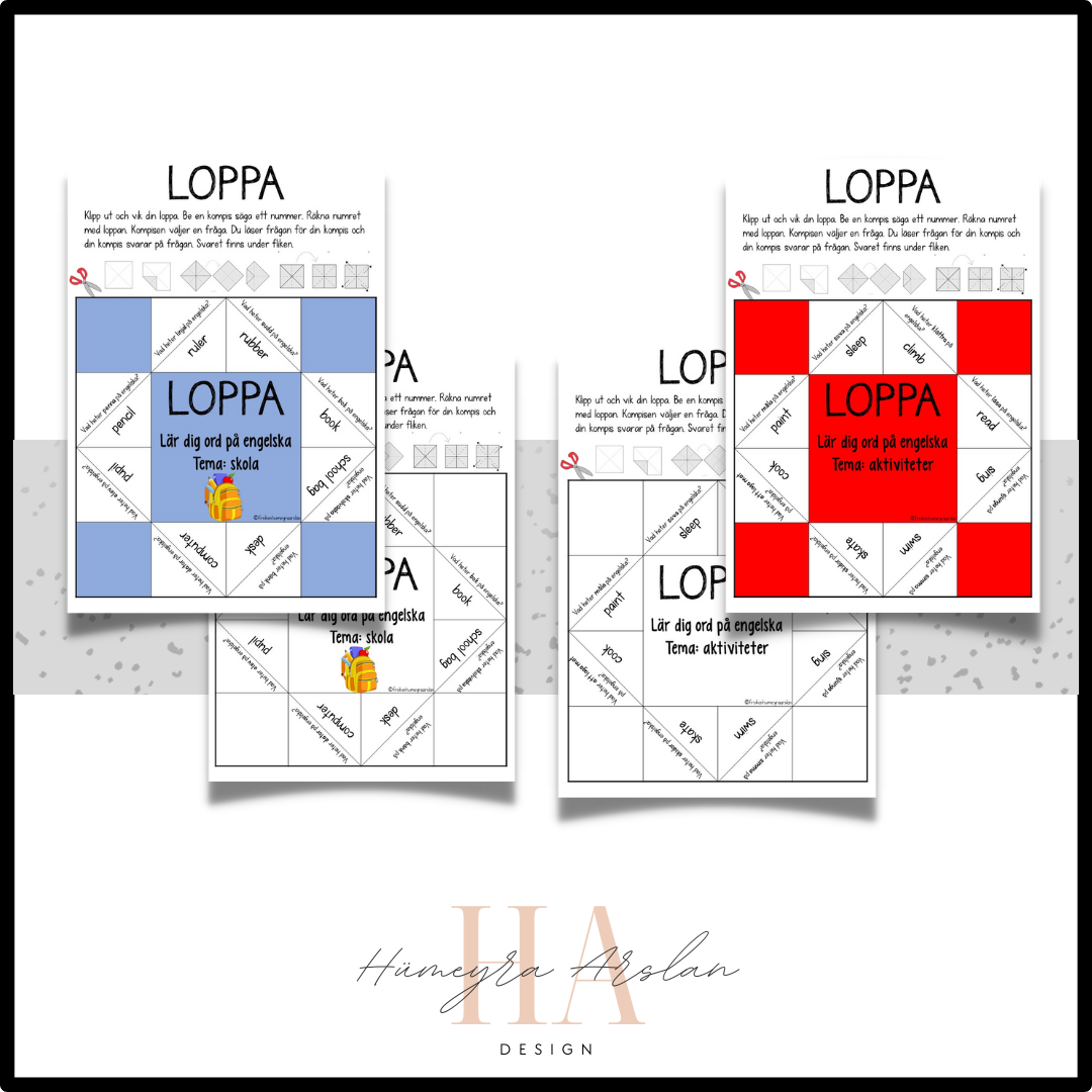 Med dessa loppor tränar eleverna på olika ord på engelska, inom olika teman. Materialet innehåller 11 loppor i färg och en svartvit version av varje loppa medföljer.