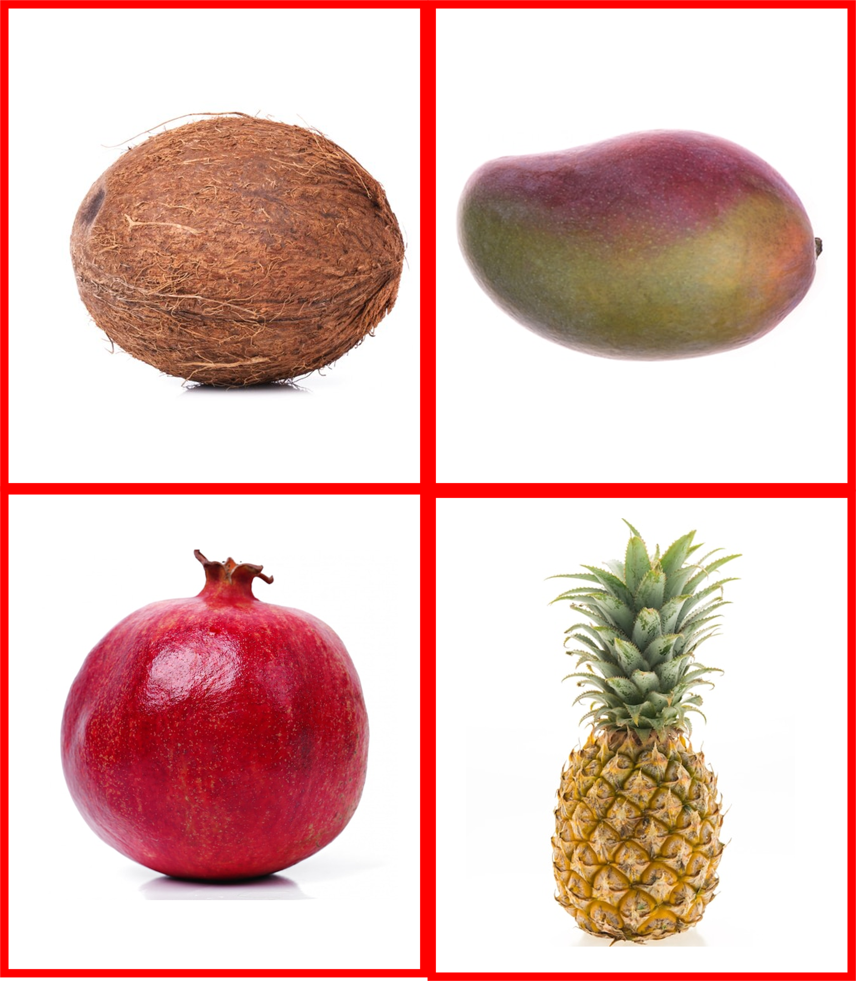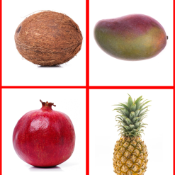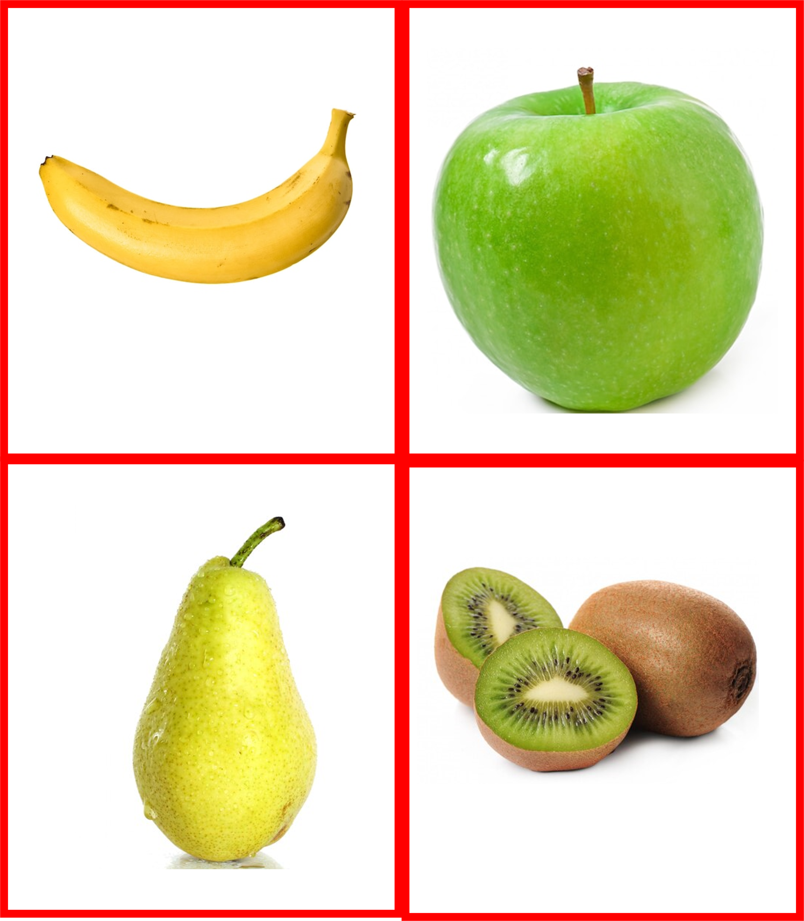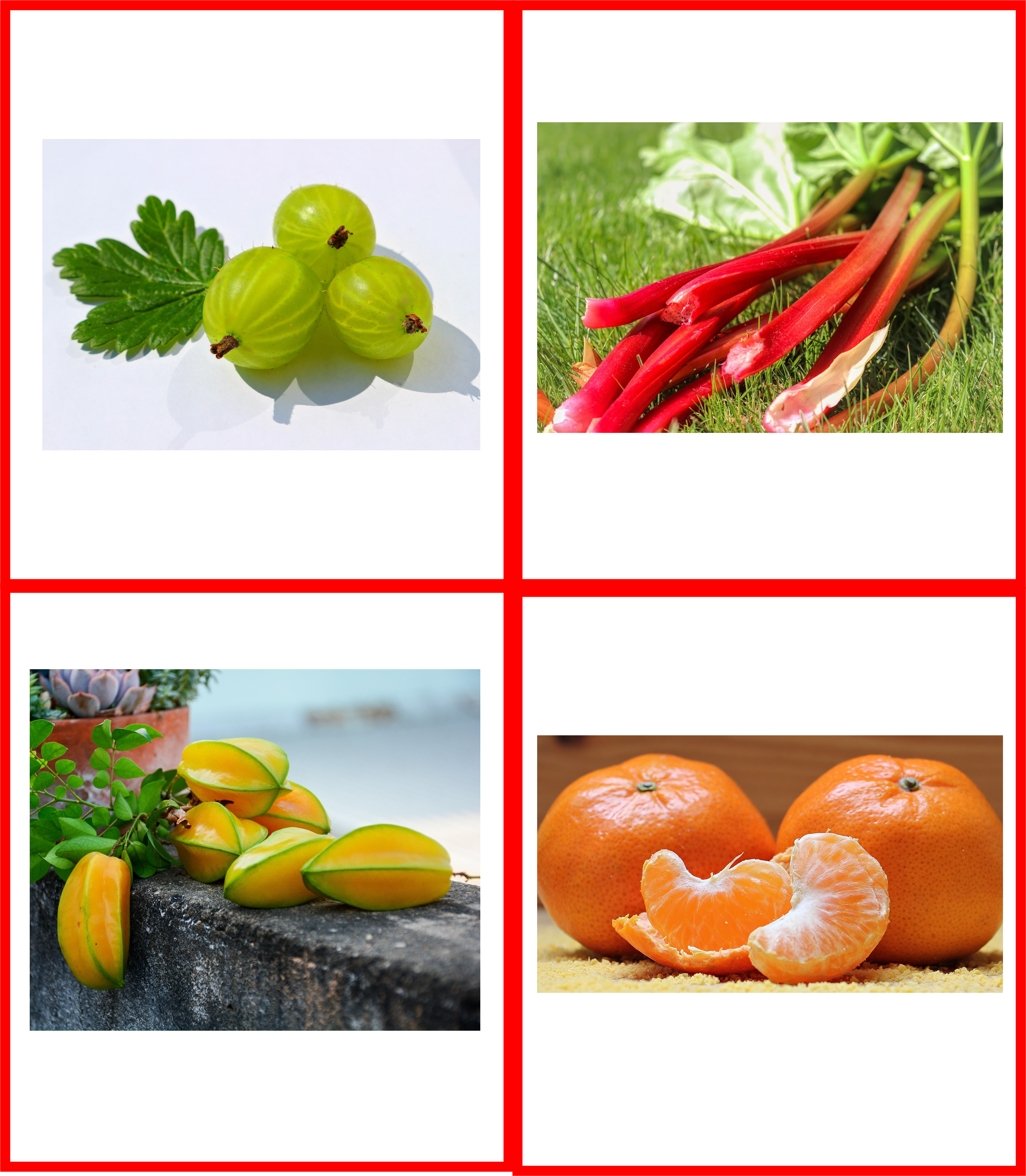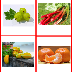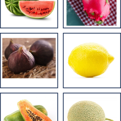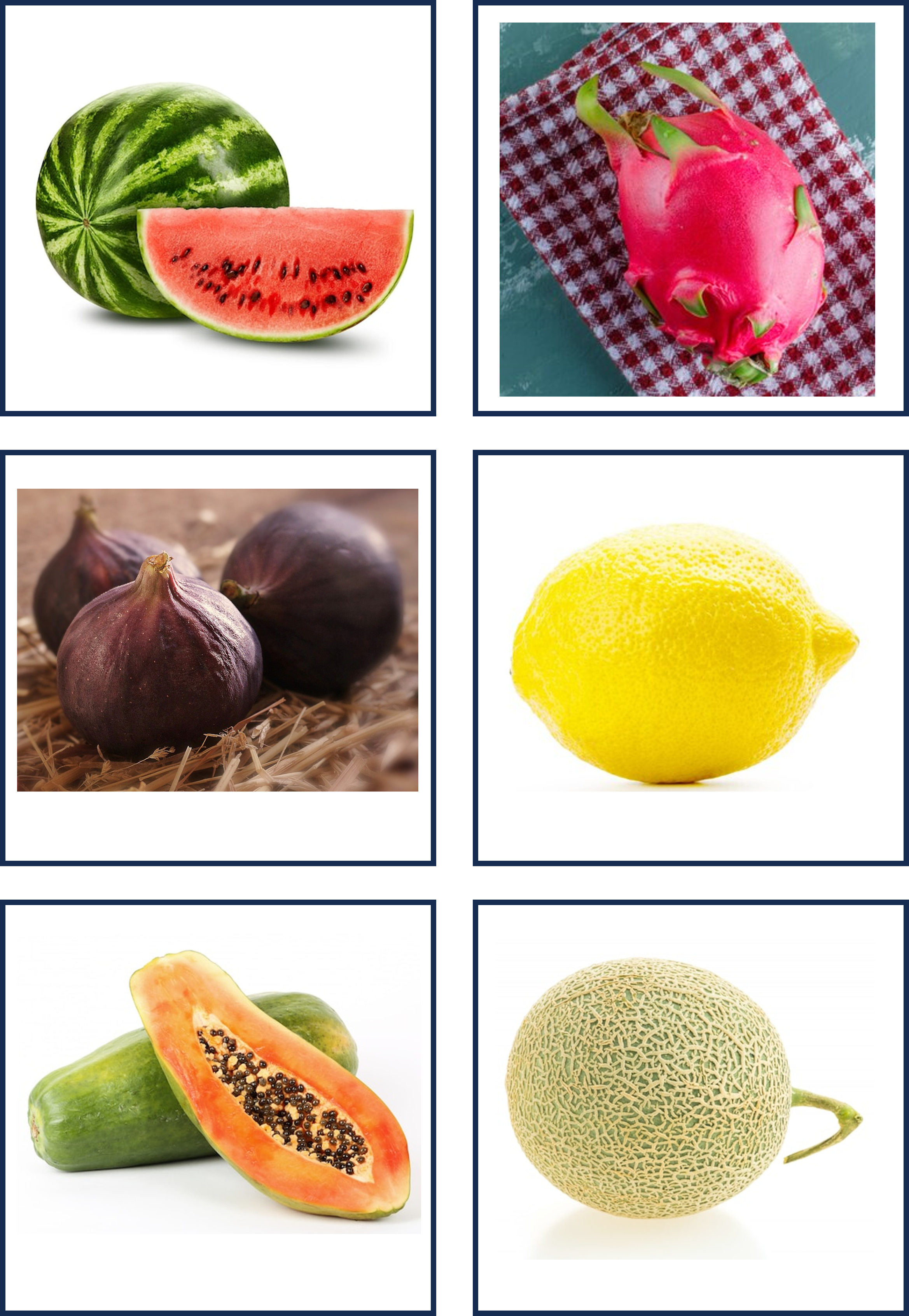 Materialet innehåller 9 brickor och 36 spelkort på frukter och bär.