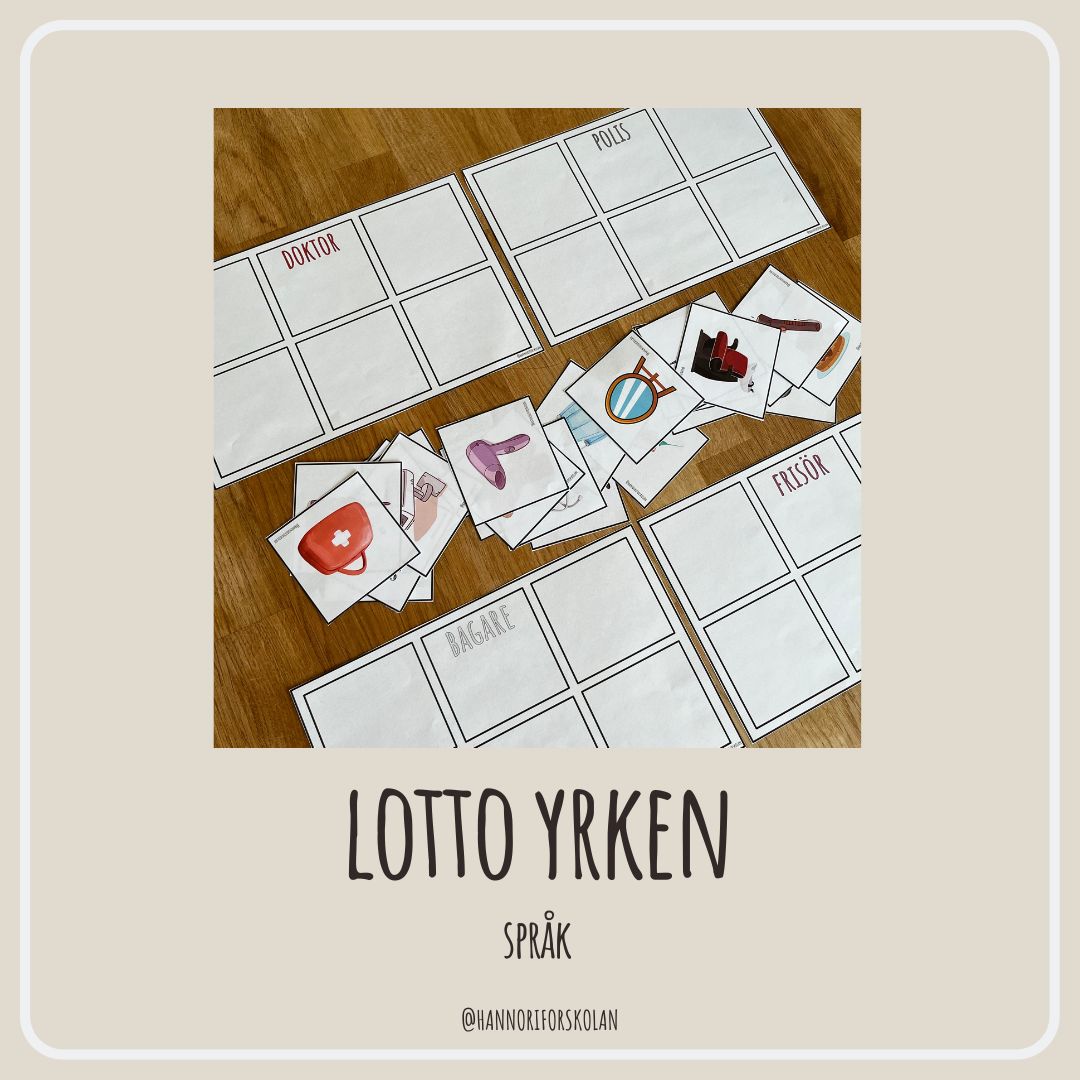 Lotto yrken – ge barnen varsin lottobricka. Låt de sedan dra ett kort i taget, den som har kortet på sin bricka får den.