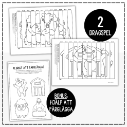 Färglägg, klipp ut, vik och det magiska dragspelet är klart. Om det är svårt att se hur fälten ska färgläggas går det att titta på de medföljande hela bilderna på motiven.