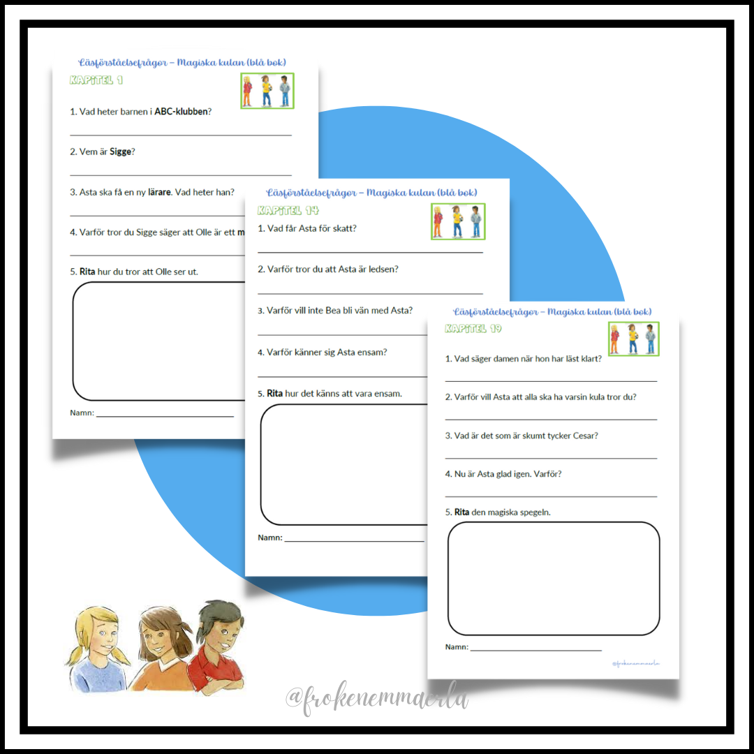 Här kommer läsförståelsefrågor till Magiska kulan (Läsebok A) blå bok.