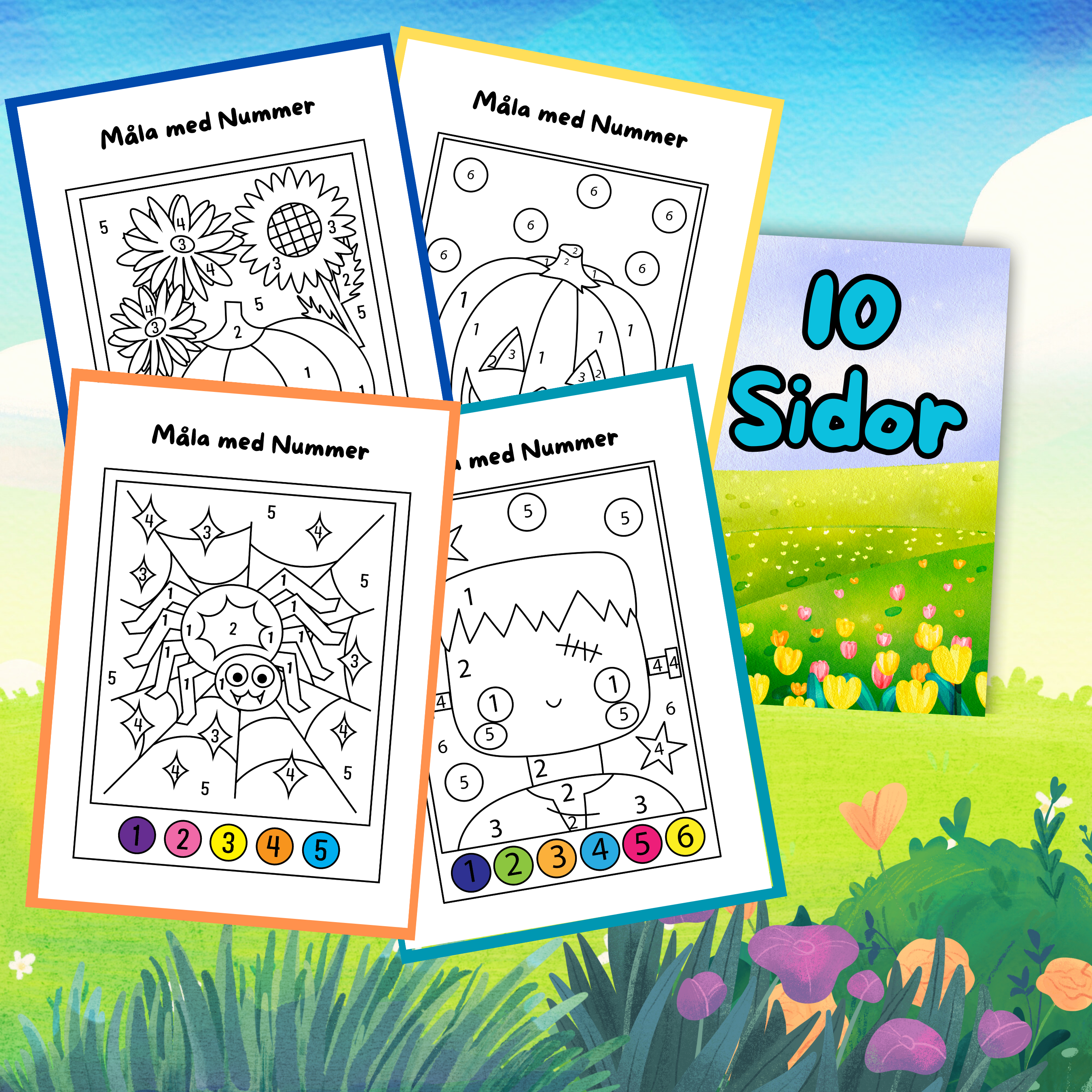 10 sidor av bilder med Halloween tema måla.