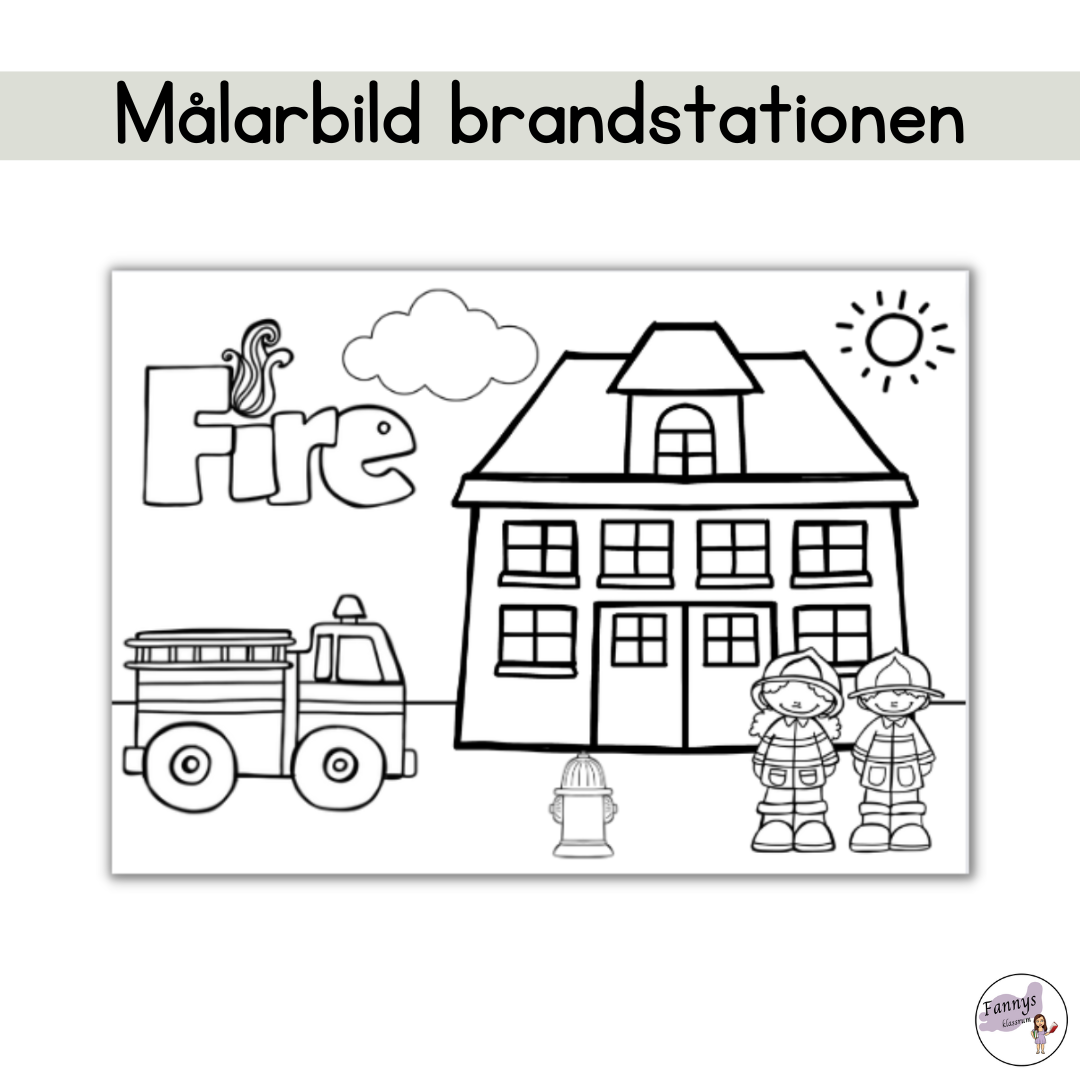 Målarbild med tema brandstationen. Passar ihop med mitt andra material om brandstationen.
