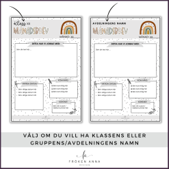 Redigerbar mall för månadsbrev att skriva månadsbrev till vårdnadshavare i. Totalt ingår sex olika utföranden samt två bilagor med plats för foton att välja på. Du kan välja på ”Klass” eller en redigerbar rad om du t.ex. vill skriva avdelningens eller gruppens namn istället.