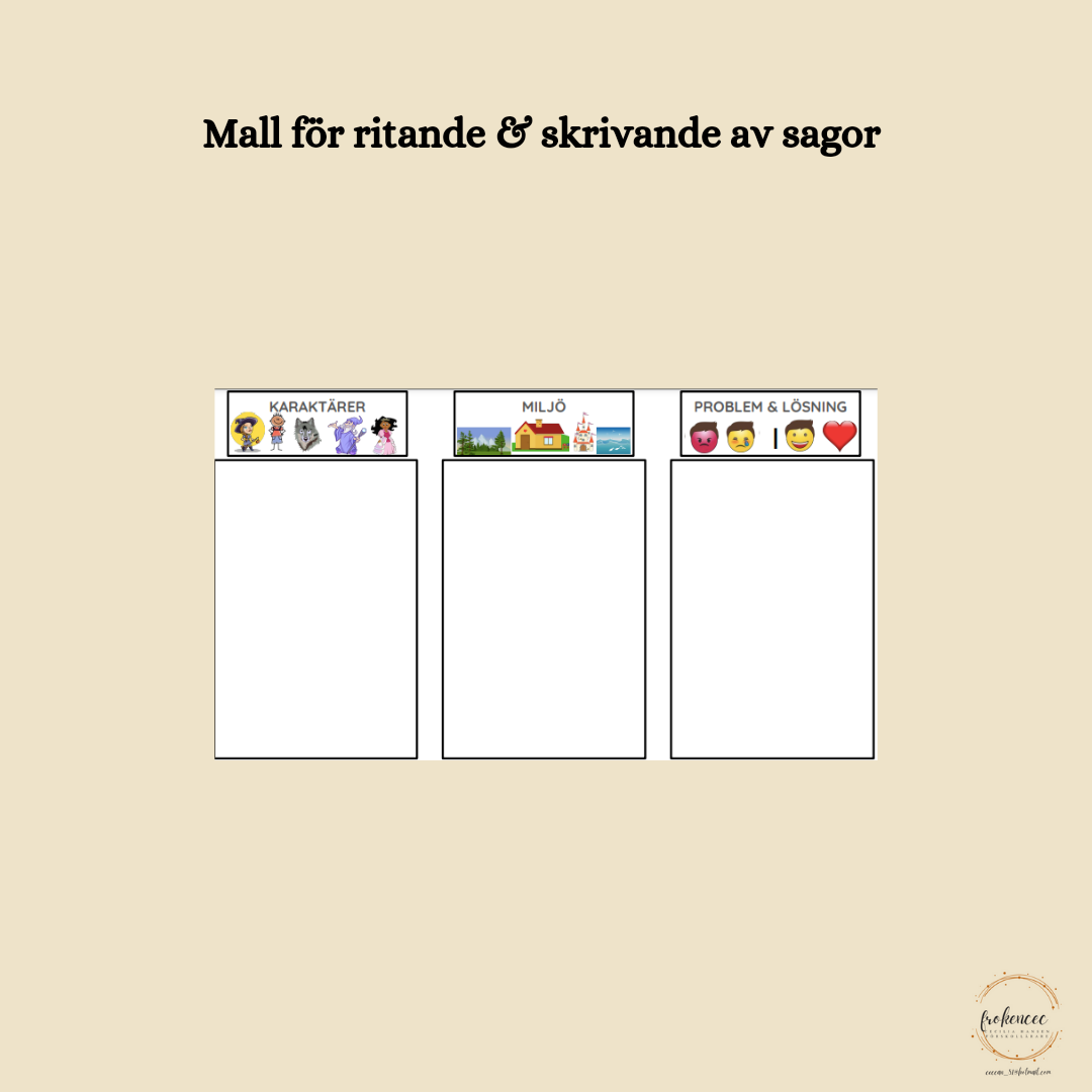 En enkel mall när barn och elever ska rita och/eller skriva egna sagor.