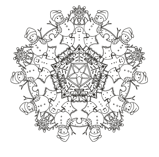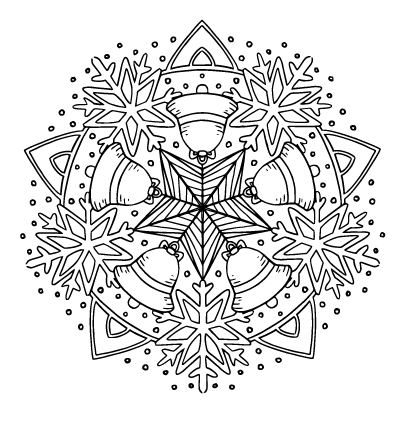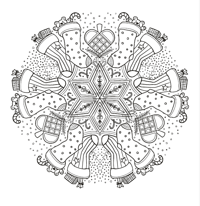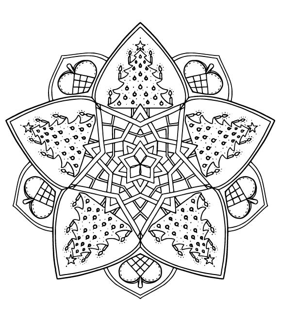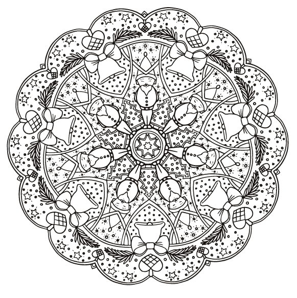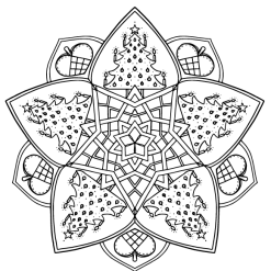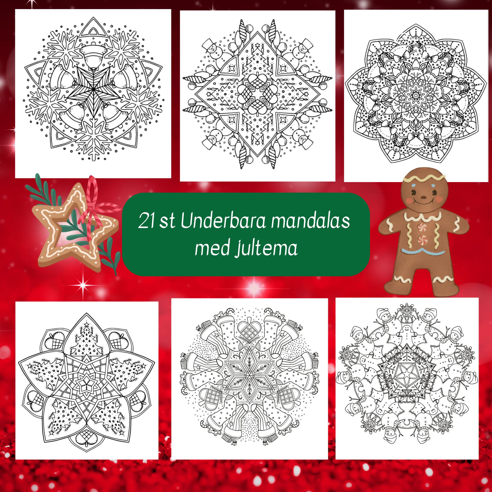 22 st välgjorda mandalas med jultema. Här finns både mer detaljerade och enklare mandalas.