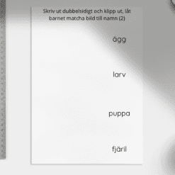 Upptäck fjärilens magiska livscykel genom roliga och lärorika matchningsövningar! Det här materialet är utformat för barn i förskola och tidig skolålder och tränar både observation, språk och begreppsförståelse.