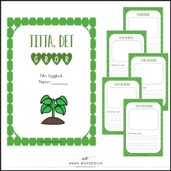 - Titta, det gror – dokumentationsunderlag vid plantering. Eleverna får rita och beskriva alla moment och vad som händer från plantering och fyra veckor framåt. I slutet av häftet finns även ett vattningsschema att fylla i varje dag.