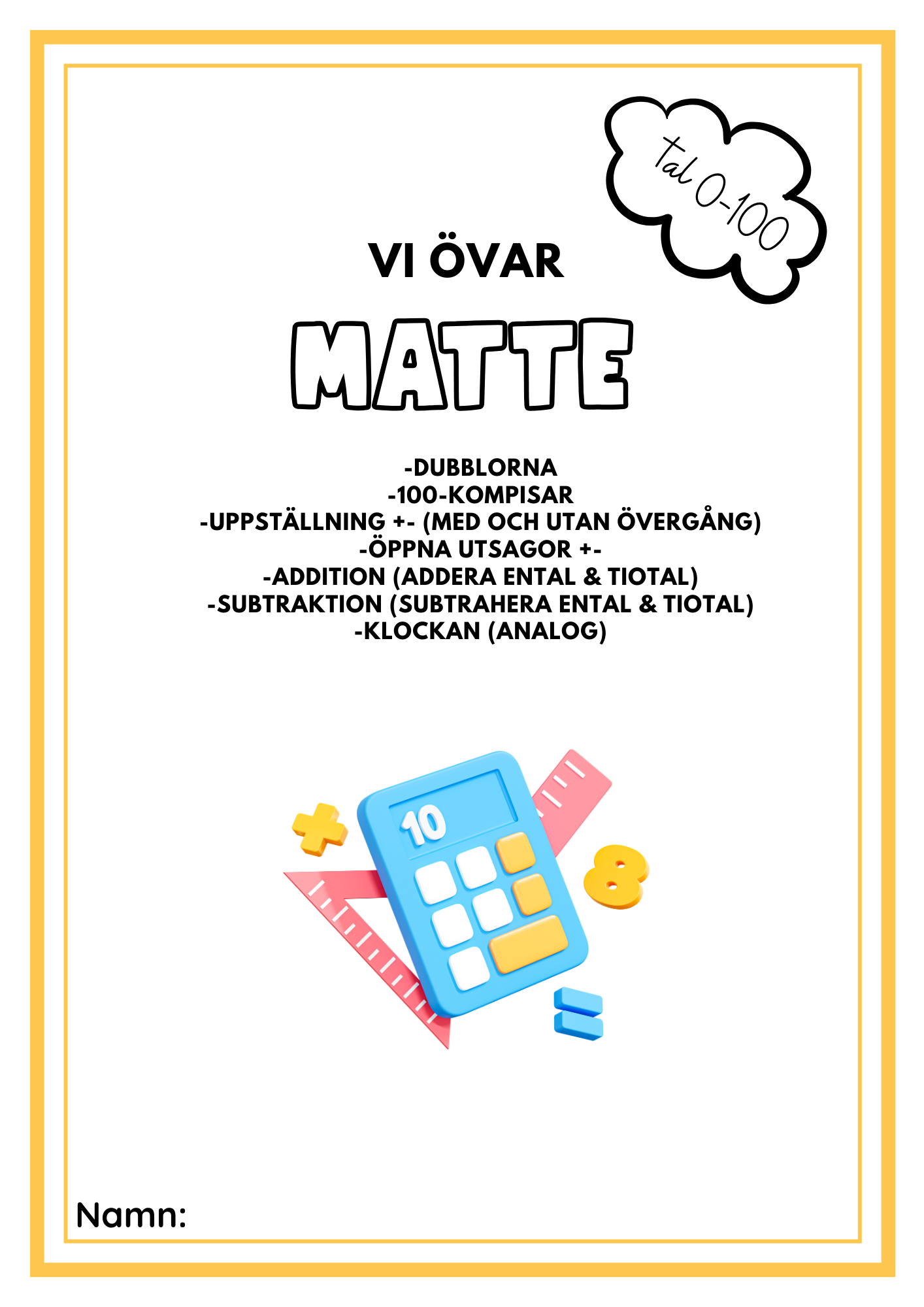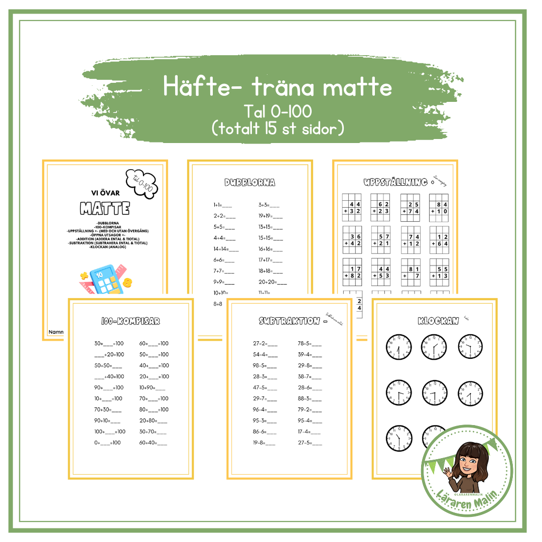Mattehäfte (totalt 15 sidor arbete) som tränar olika tal som: