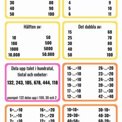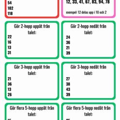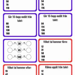Dessa kort är avsedda för läraren, special läraren eller … och handlar om att stärka grundläggande matematiska färdigheter, Dessa kort är avsedda som stöd för läraren att hjälpa eleverna att stärka sin grund i matematik. Att automatisera matematiska principer som talraden, hopp med 2, 3, 5, 10 och 100, multiplikationstabellerna, hälften av eller dubbelt, är en förutsättning för att eleverna ska kunna utvecklas vidare i detta ämne.