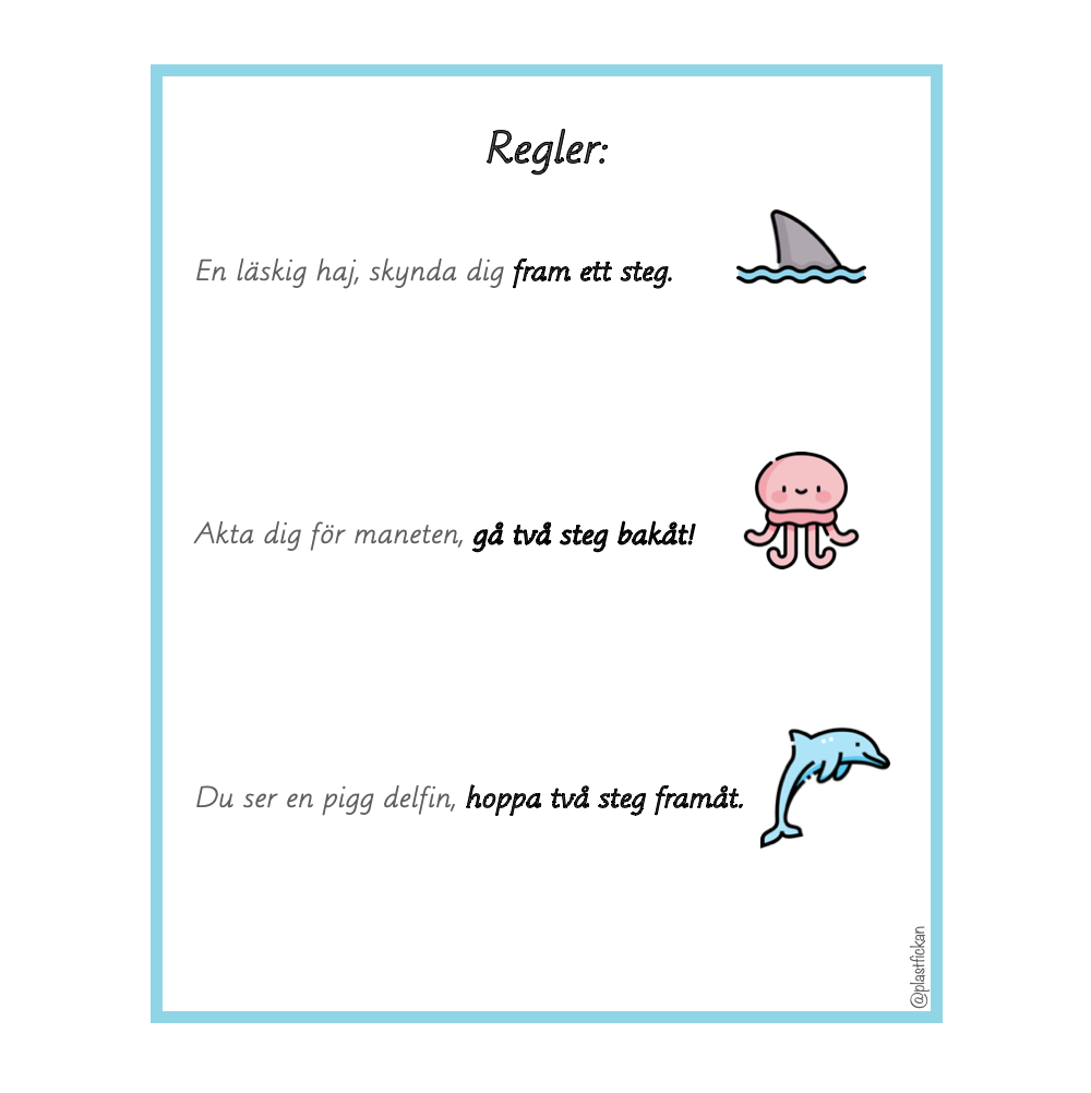 I materialet finns spelplan, regler (skrivs med fördel ut på baksidan av spelplanen), samt en stödlapp med facit som eleverna kan ha tillgänglig när de spelar. Stödlappen finns i två olika storlekar.