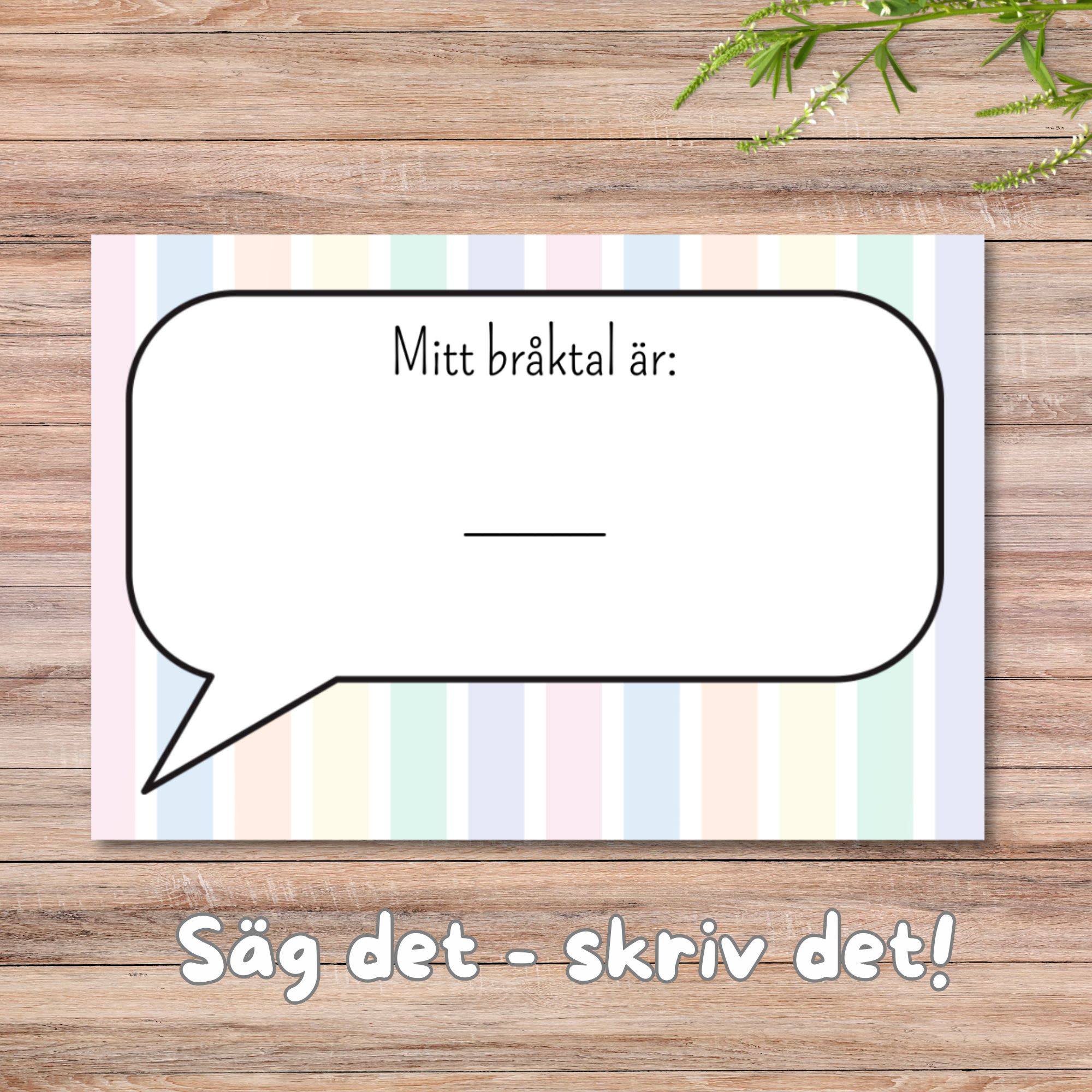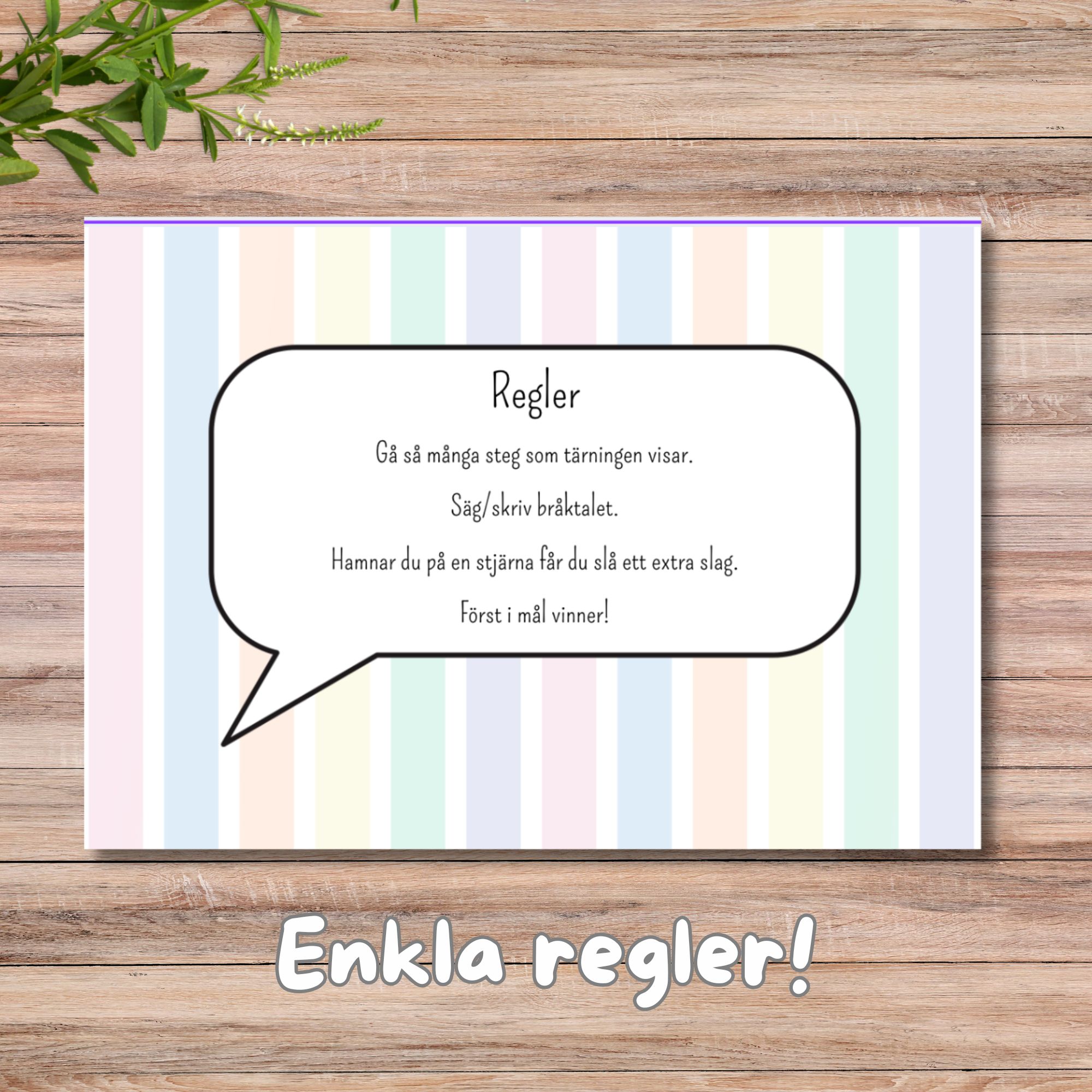 En svarslapp att laminera medföljer i materialet, barnen kan skriva svaren med whiteboard under spelets gång. Barnen kan även spela spelet genom att enbart säga det bråktal som de hamnar på, för en snabbare spelomgång.