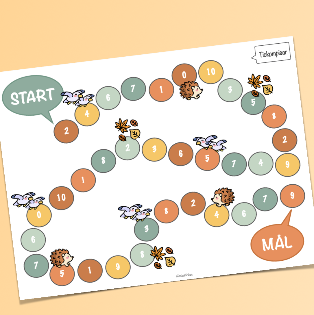 Sökord: tiokompisar, 10-kompisar, tiokamrater, 10-kamrater, addition, mattespel, spel gruppuppgift, mängdträning, addition, talkamrater, höst skogen, skog, igelkott, flyttfågel, löv, höst