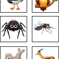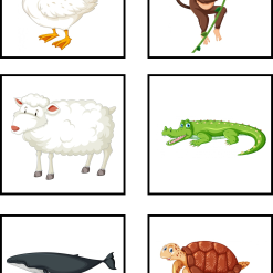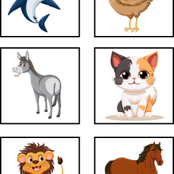 Materialet är ett memory spel med temat djur. Skriv ut sidorna i två exemplar och klistra på färgat papper innan du laminerar dem. Prata gärna om bilderna när ni spelar spelet så blir det även ett språkmaterial.