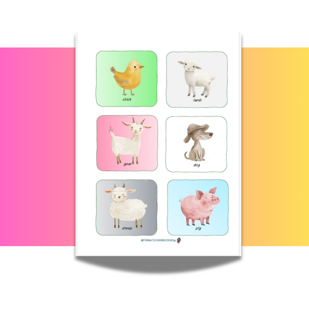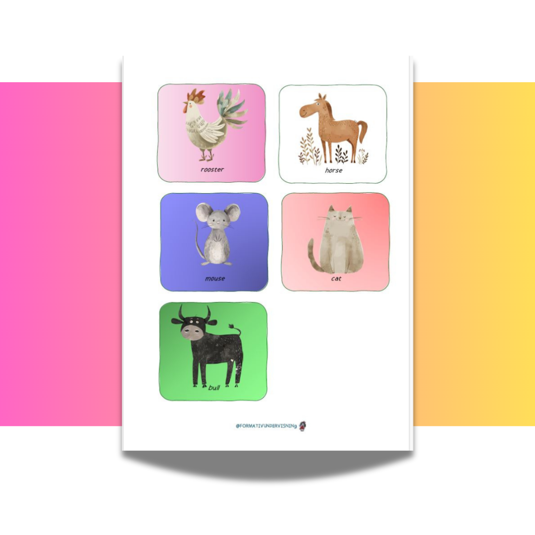 Roligt memory spel på engelska med bondgårdstema. Skriv ut 2 stycken av varje exemplar och låt barnen spela memory på engelska. Laminera så håller spelet längre.