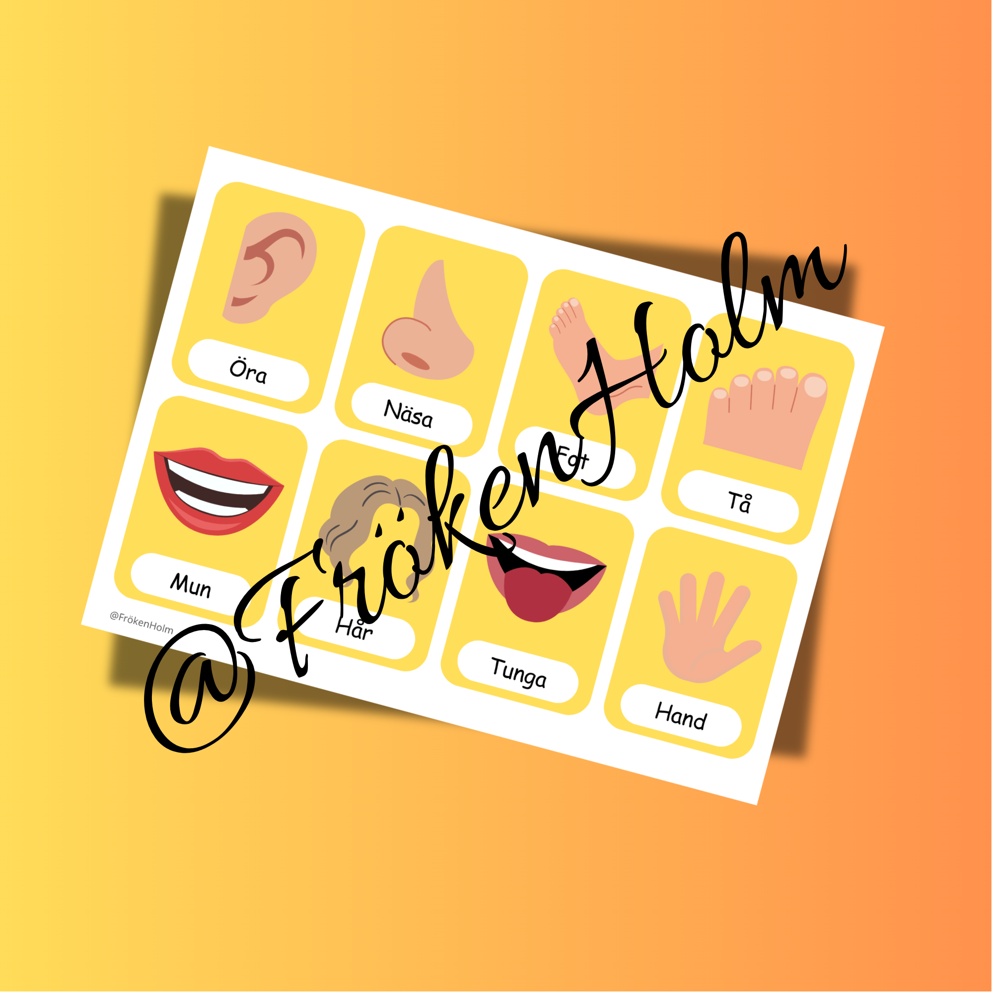 Ett memory på lätt nivå som passar till när ni talar om kroppen. Kom ihåg att skriva ut dubbelsidigt för att få med baksidan till spelet. Förskoleklass, åk 1 och åk 2.