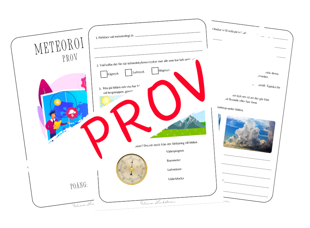 Meteorologi – Prov, facit, instuderingspapper och instuderingsfrågor.