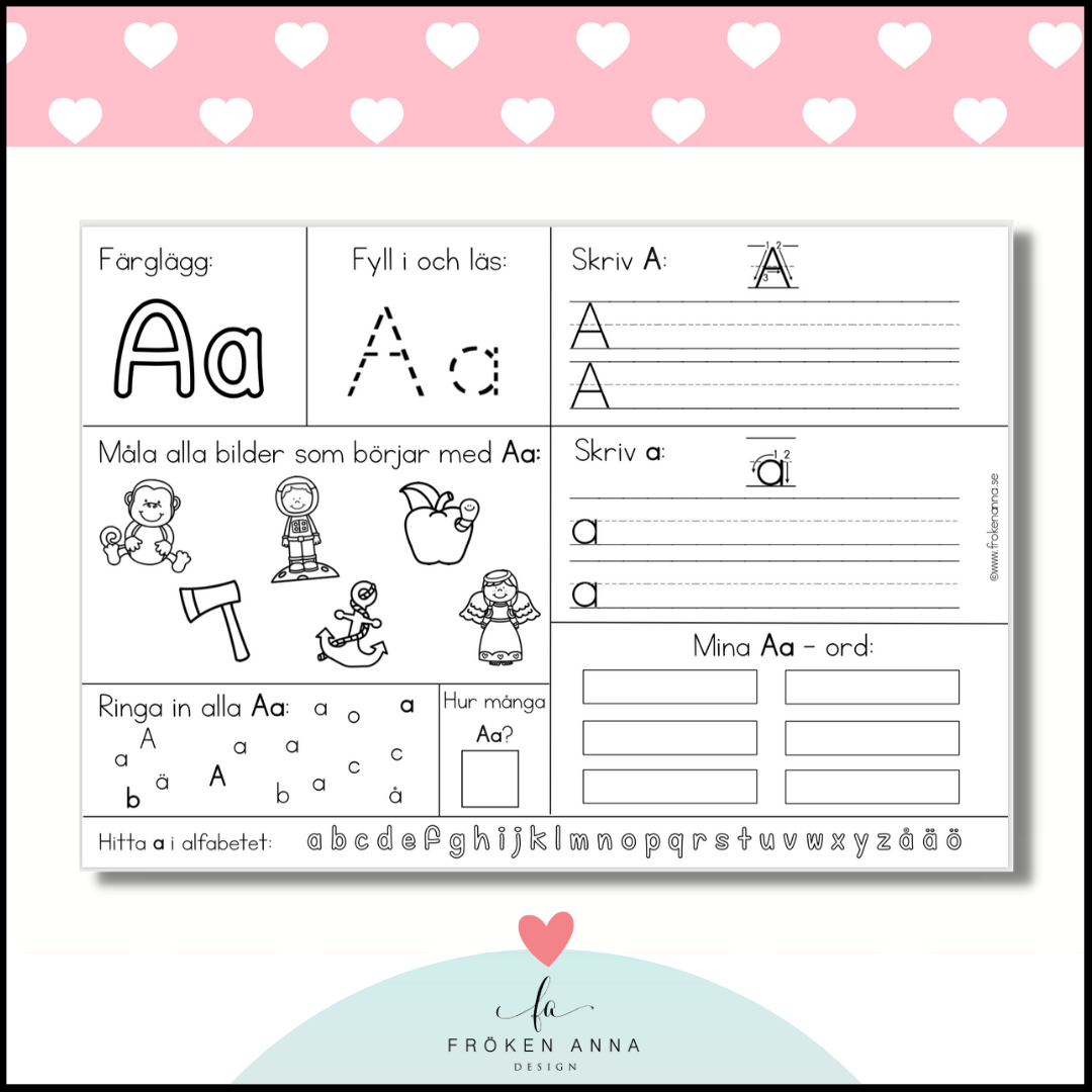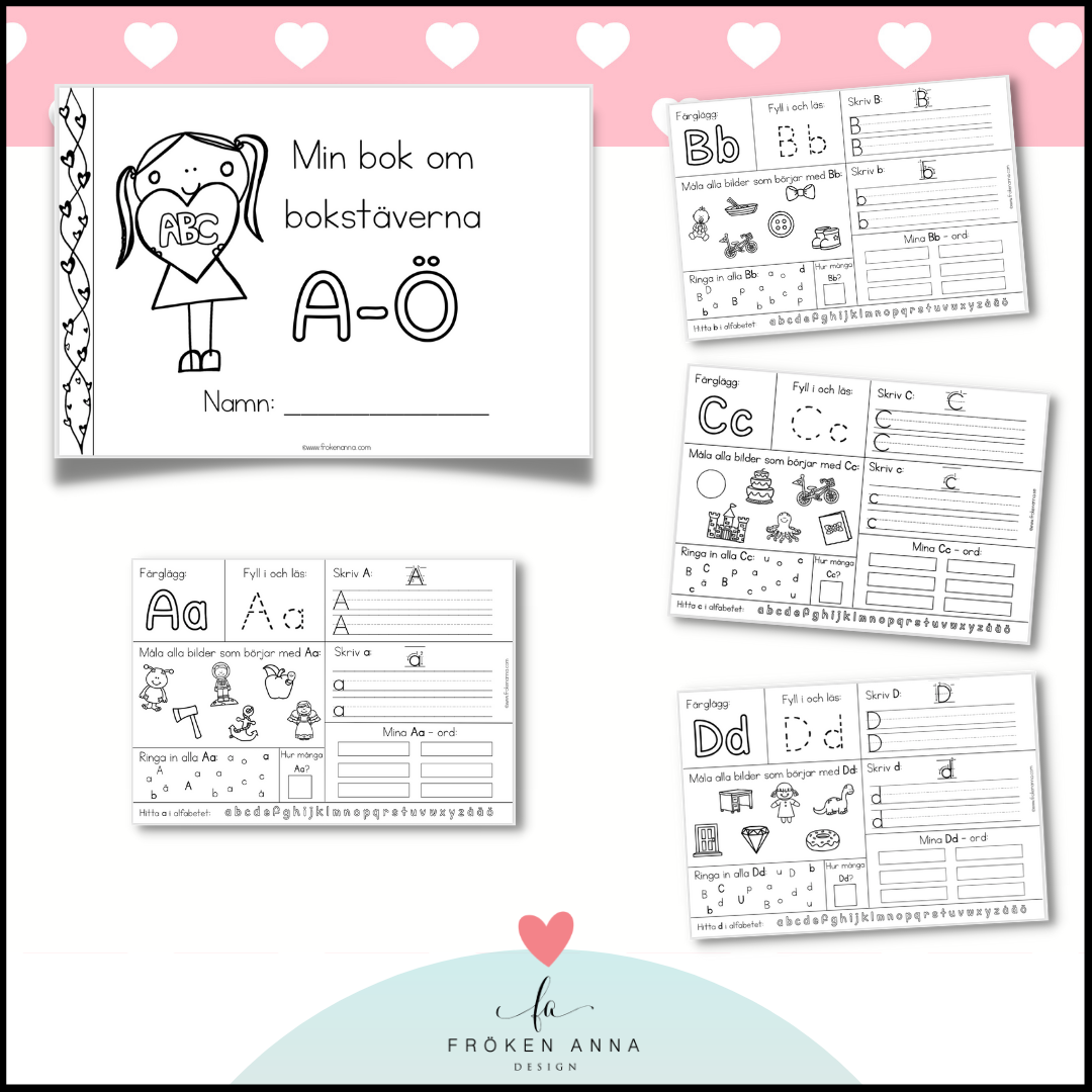 I detta material får eleverna skapa sin egen bok: ”Min bok om bokstäverna A-Ö”.