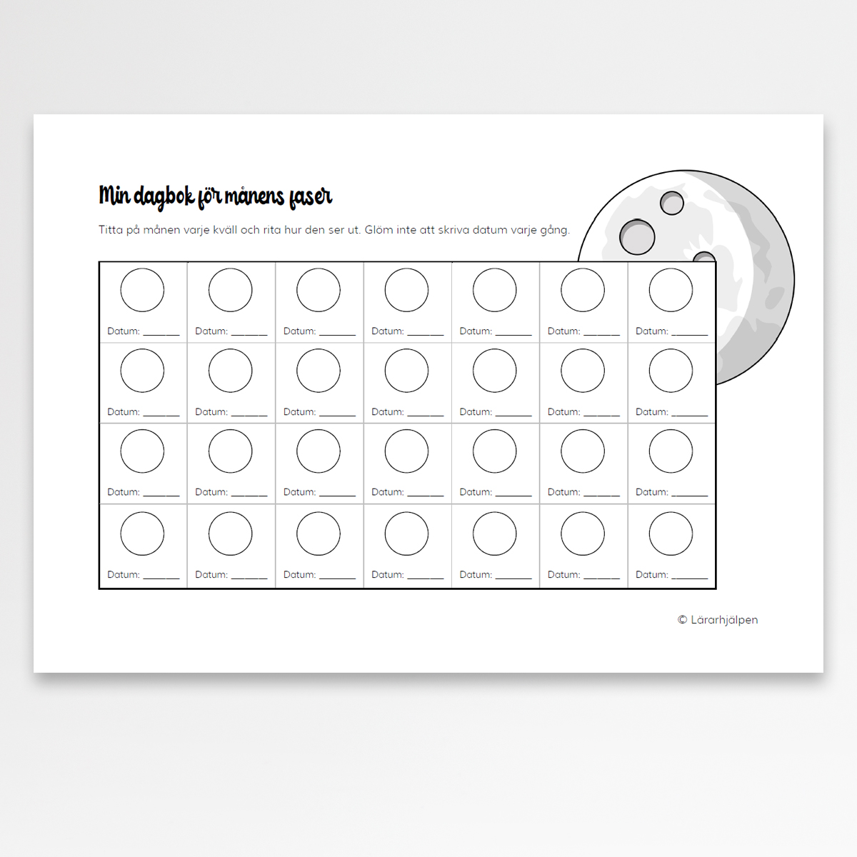 Vill du studera månens faser varje kväll under en period? Då är detta dokument perfekt för dig!