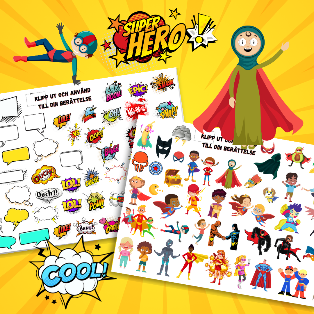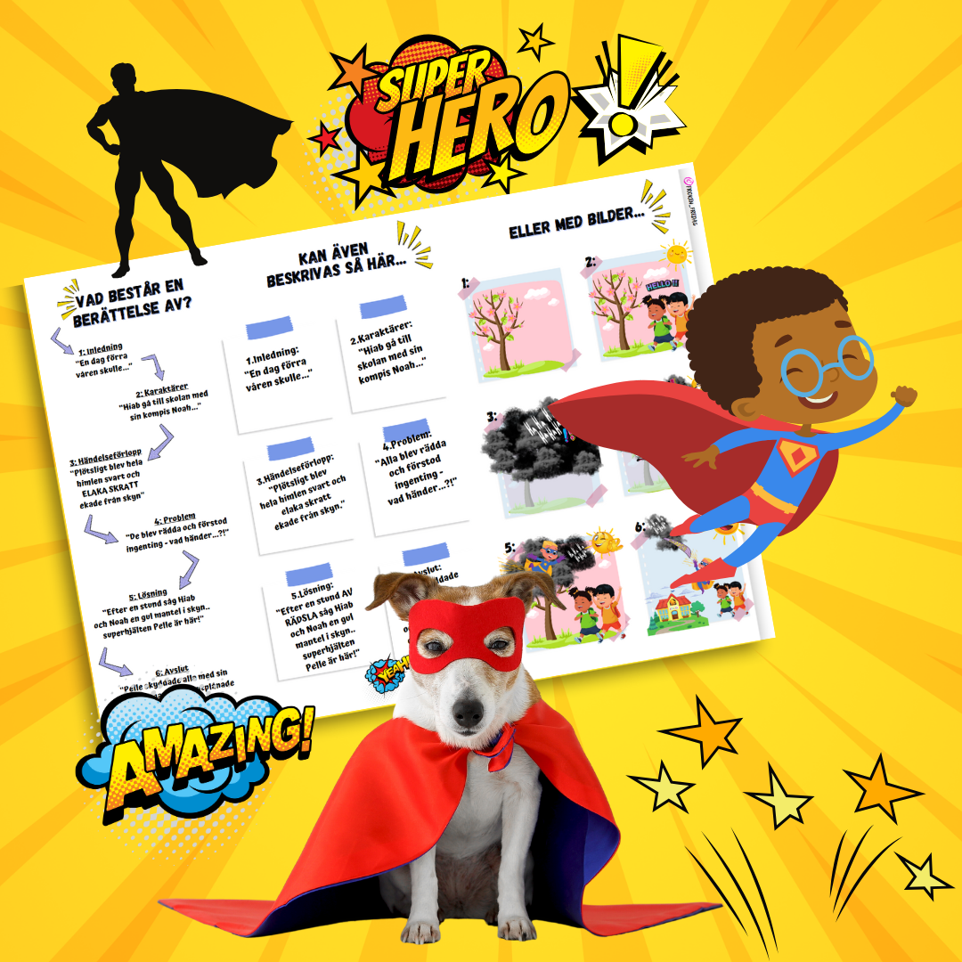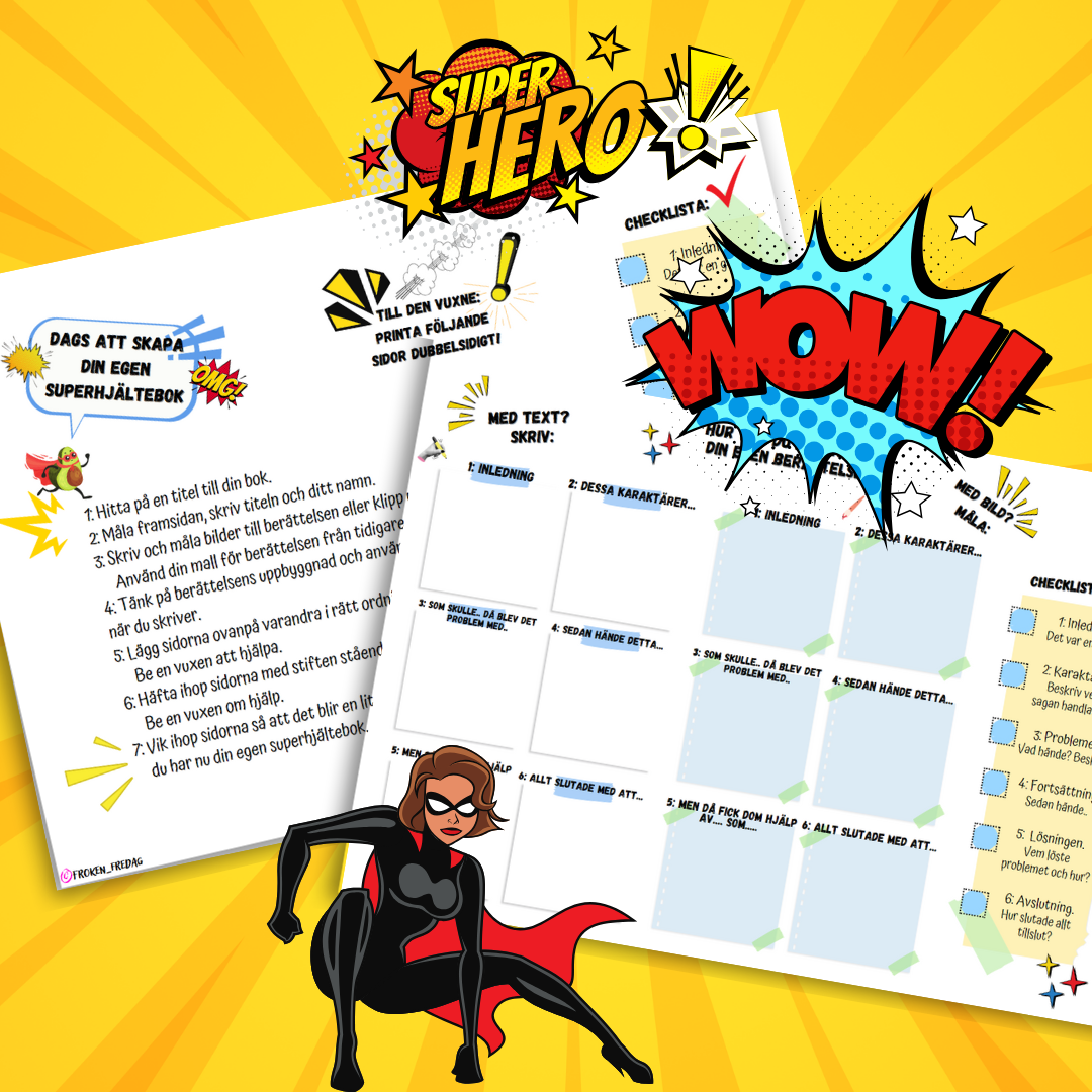 Jobba med barnboksveckan på ett motiverande och dundrande sätt! Låt eleverna göra egen bok med superhjältetema.