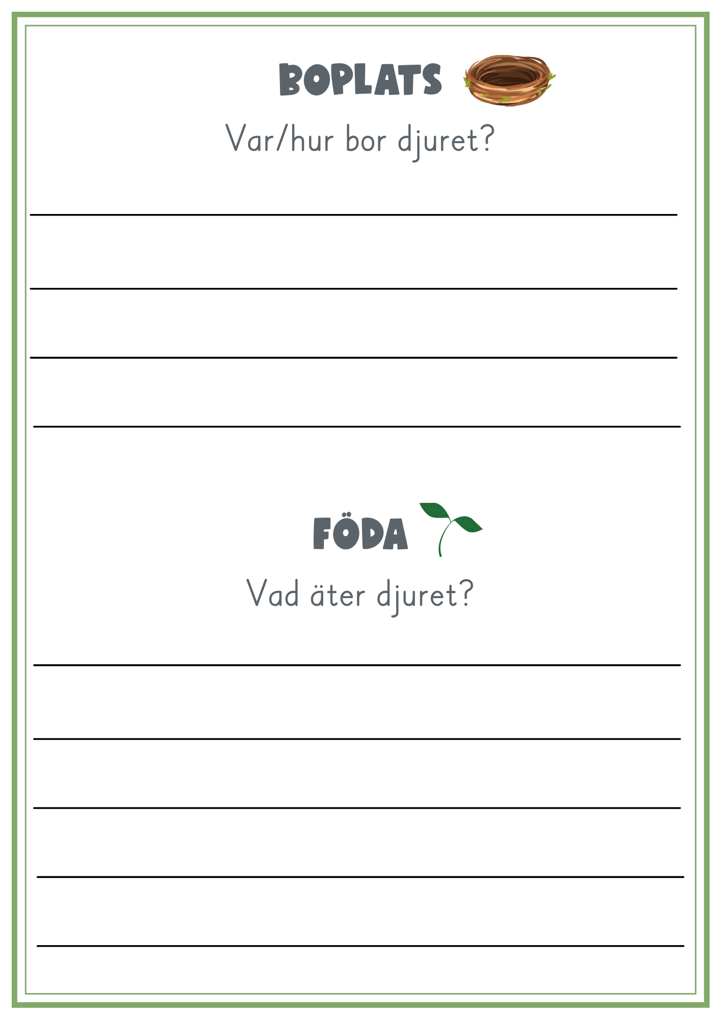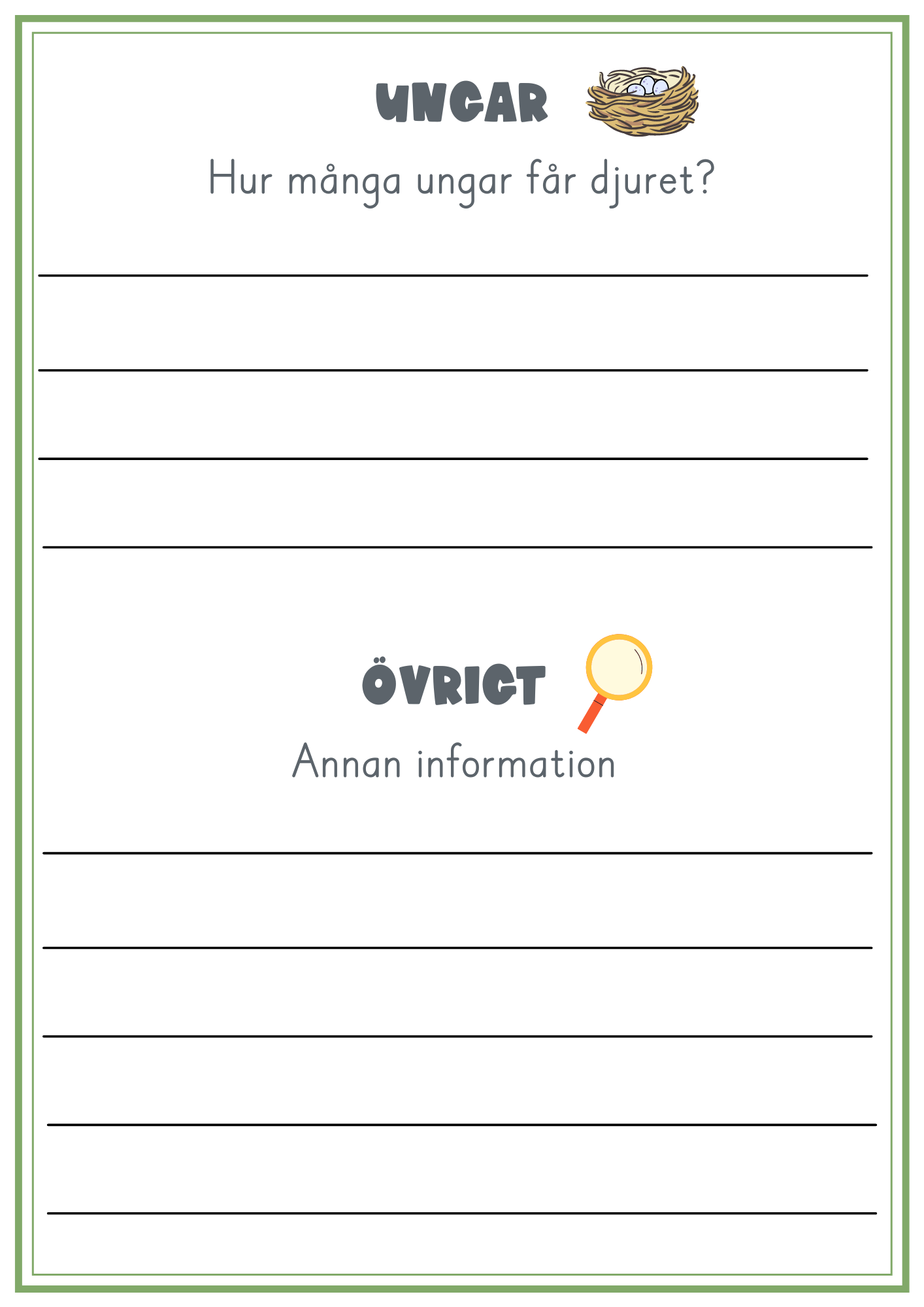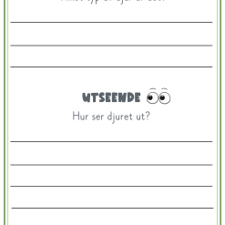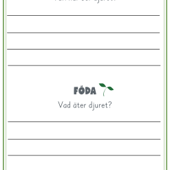 Min faktabok om djur, här tränas eleverna på att skriva faktatexter. Enkel och tydlig struktur med rubrik, bild, klassificering, boplats, föda, utseende ungar och övrigt. I boken finns det plats att skriva om 3 djur.