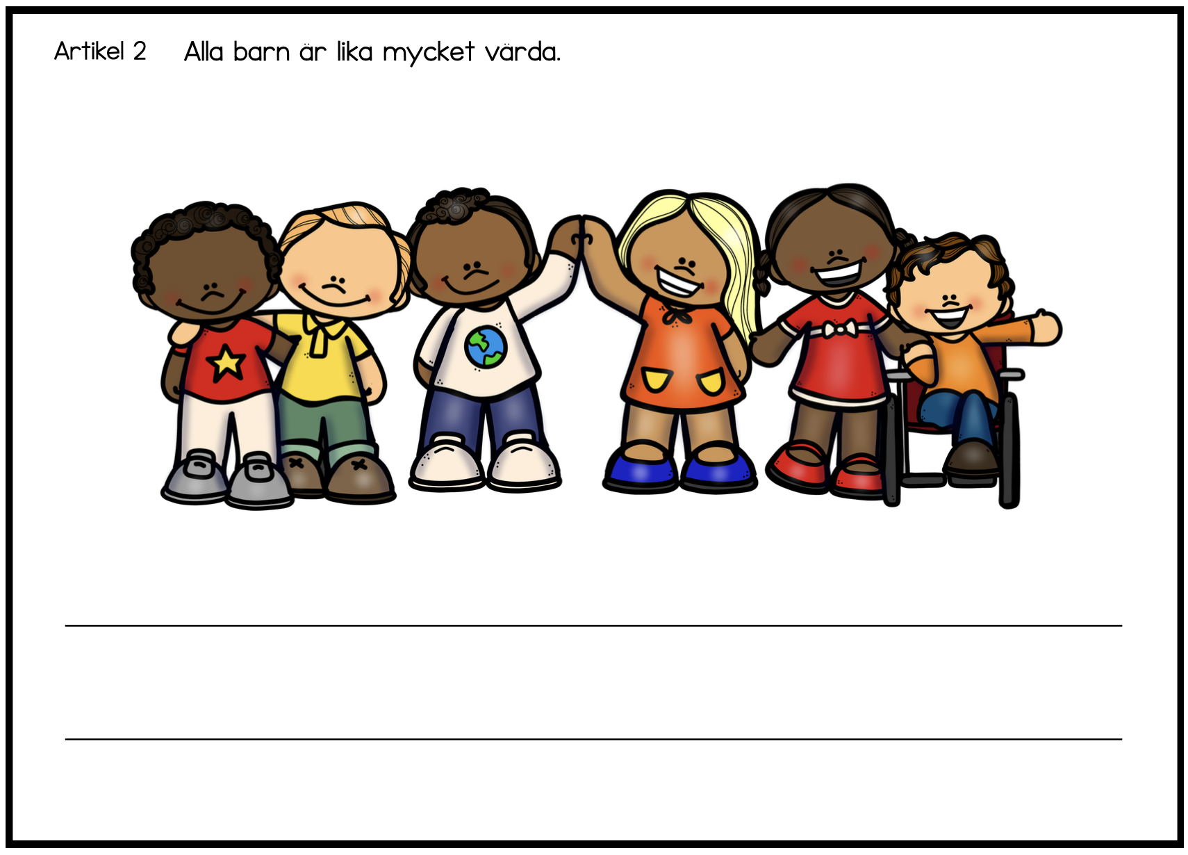Låt eleverna göra en liten bok med 4 artiklar ur barnkonventionen (artikel 2, 3/6, 12 och 28).