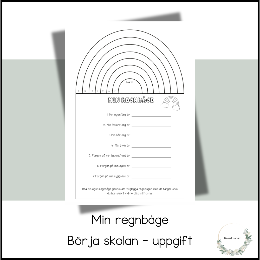 Låt barnen få svara på 7 frågor om sig själv och utifrån svaren färglägga sin egna regnbåge.