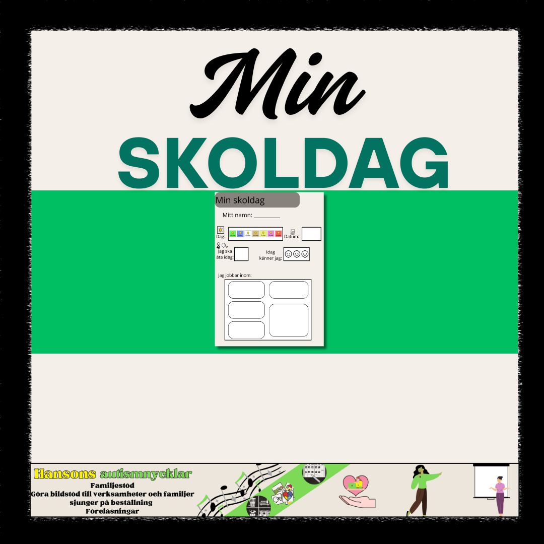 Den här bladet är en sammanfattning på vad eleven gör i skolan under vilken dag hur hen mår och vad hon ska äta idag.
