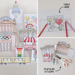 Pyssla en stad, bygg ut den med hjälp av fler hus, människor fordon och andra detaljer. Färglägg, klipp och lek i timmar.