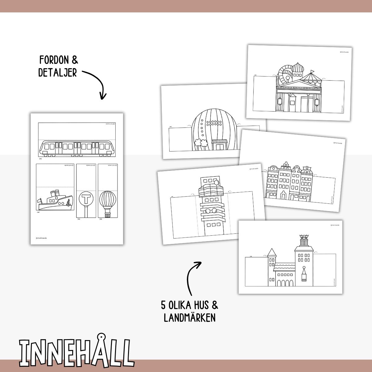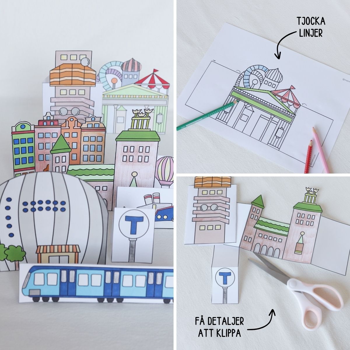 Pyssla en stad. Färglägg, klipp och lek i timmar. Bygg ut staden med fler hus och detaljer efter säsong och intresse.
