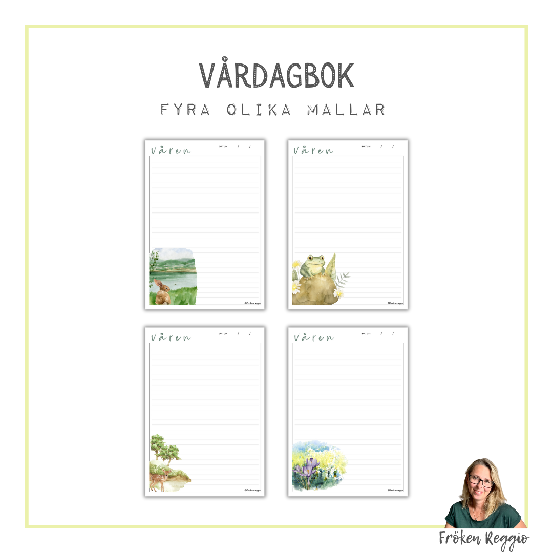 Min vårdagbok + pyssel är ett komplett och engagerande material där elever får dokumentera och utforska våren genom olika kreativa och pedagogiska uppgifter. Materialet innehåller: