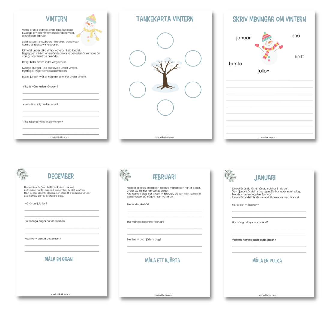Skriv meningar om vinter – välj bland orden.