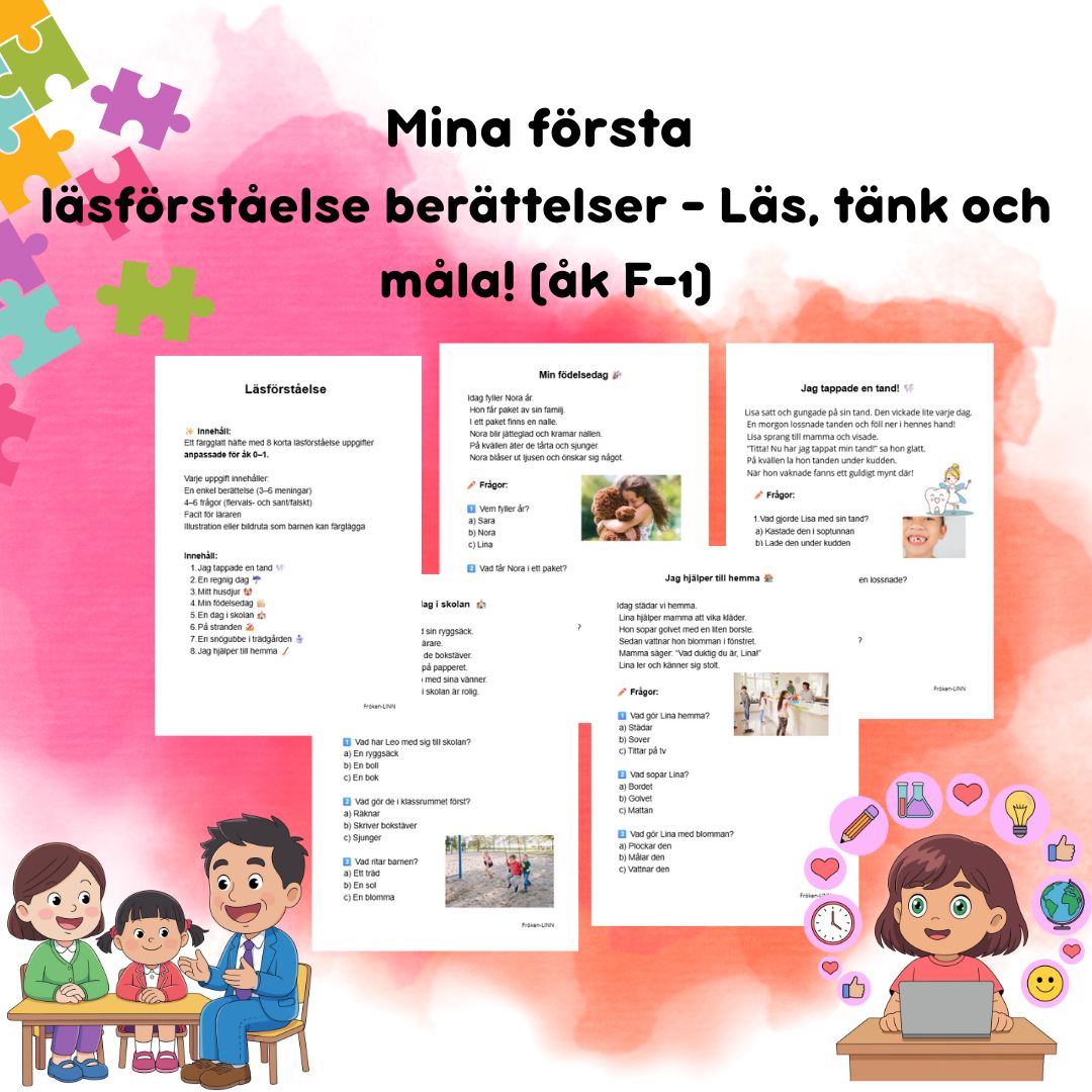 Detta ingår i Mina första läsförståelse berättelser – Läs, tänk och måla! (åk F–1)