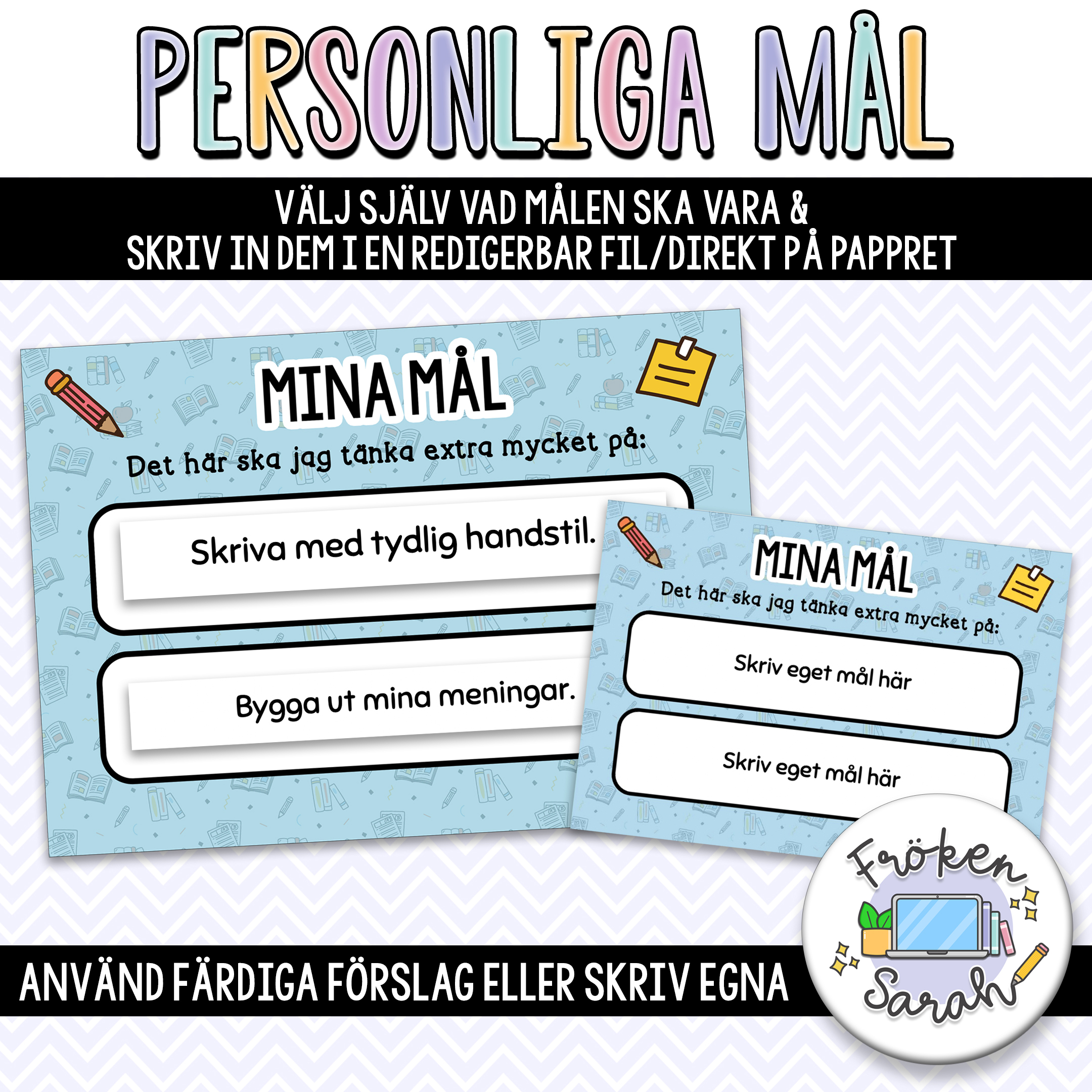 Detta är tänkt som små kort till varje elev där man kan skriva in korta mål, förslagsvis plockade från elevens IUP eller som är något som eleven ska tänka på/komma ihåg under lektionerna.