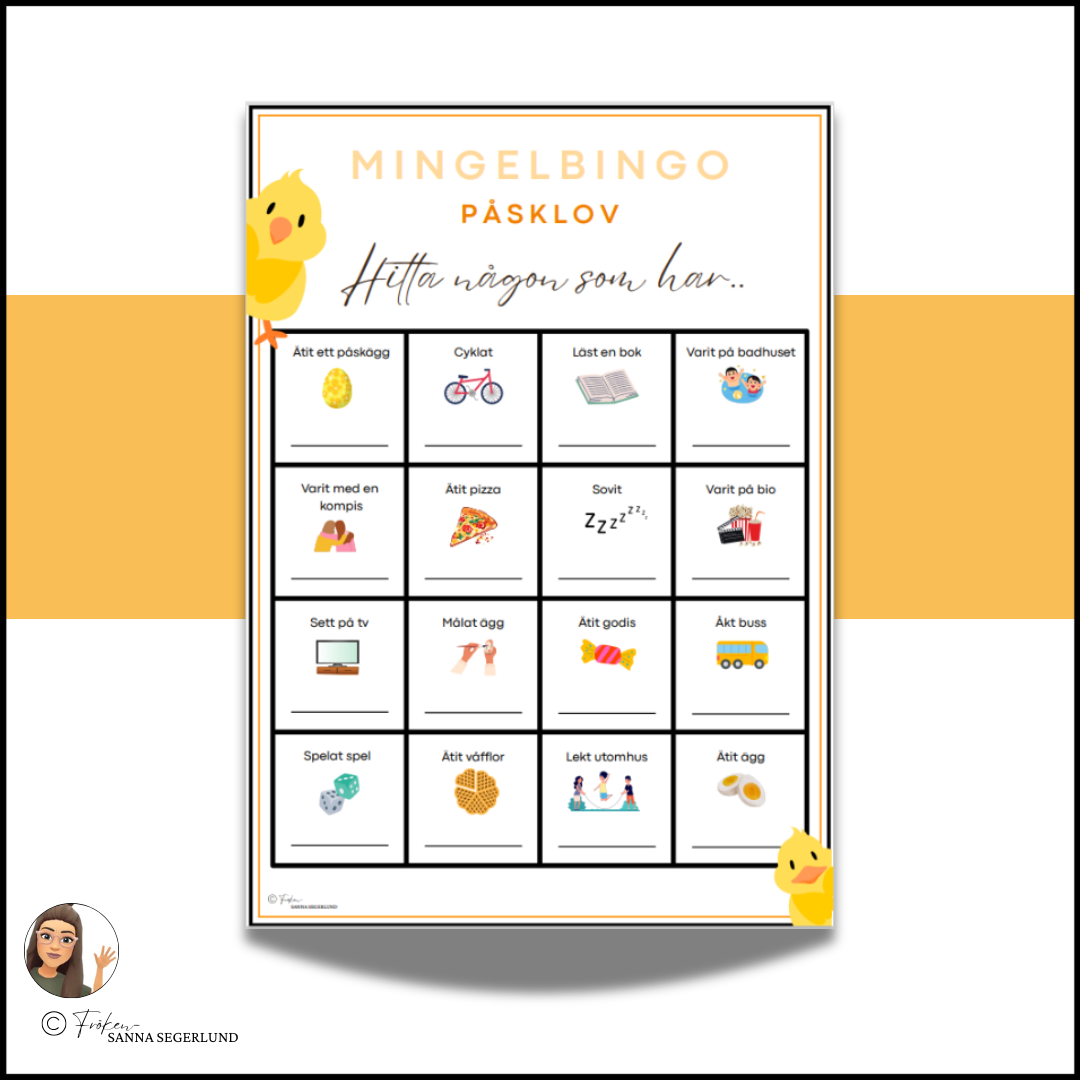 Ett lekfullt sätt för eleverna att lära känna varandra bättre efter påsklovet. Mingelbingo är en social aktivitet där eleverna får röra på sig, prata med varandra och leta efter kompisar som stämmer in på olika påståenden. Aktiviteten skapar gemenskap och eleverna får öva på att ställa frågor till varandra